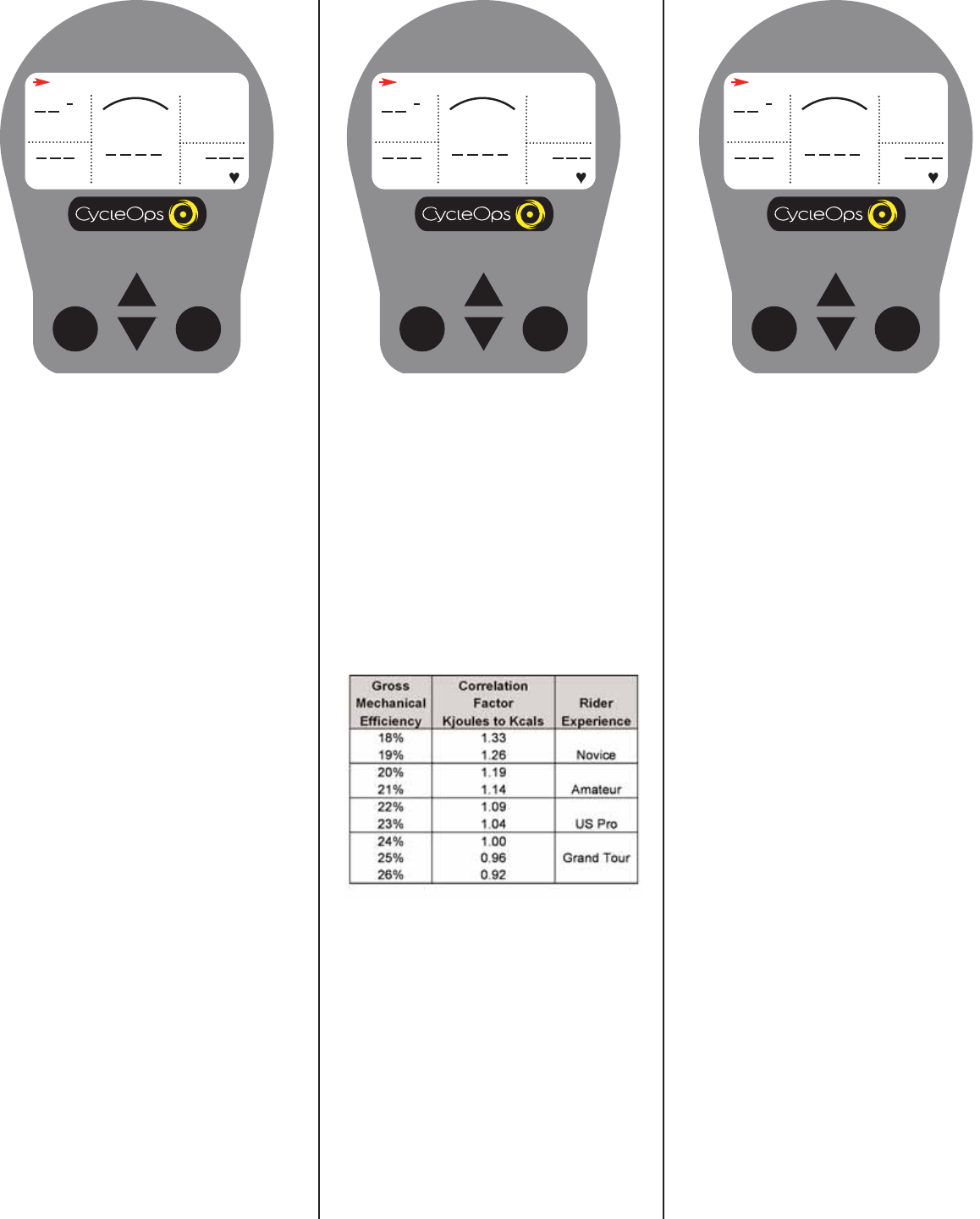 Watts - Real-time display of the effort you are putting in to pedaling the bike. This is your power reading. **If you press the select button while the cursor