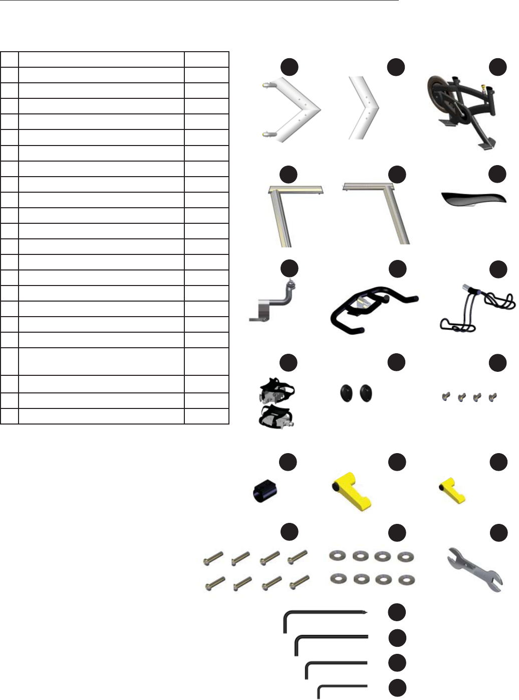 Remove all parts from the box including foam inserts. Ensure all the following parts are included: