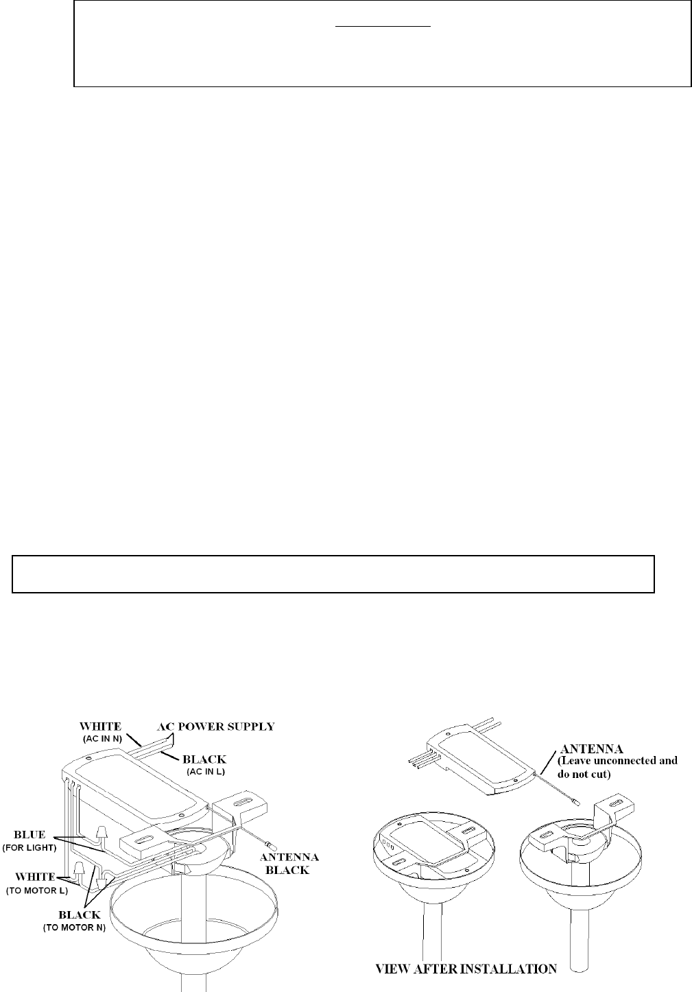 4. Disconnect from power supply at wall switch before working on remote control receiver or