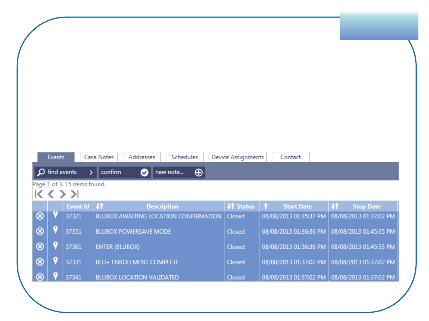 Assigned Blu+ serial number. Most recent call and GPS dates/times. Last
