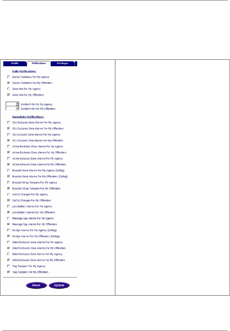 of notifications he/she needs to receive from VeriTracks™. In addition, the user can