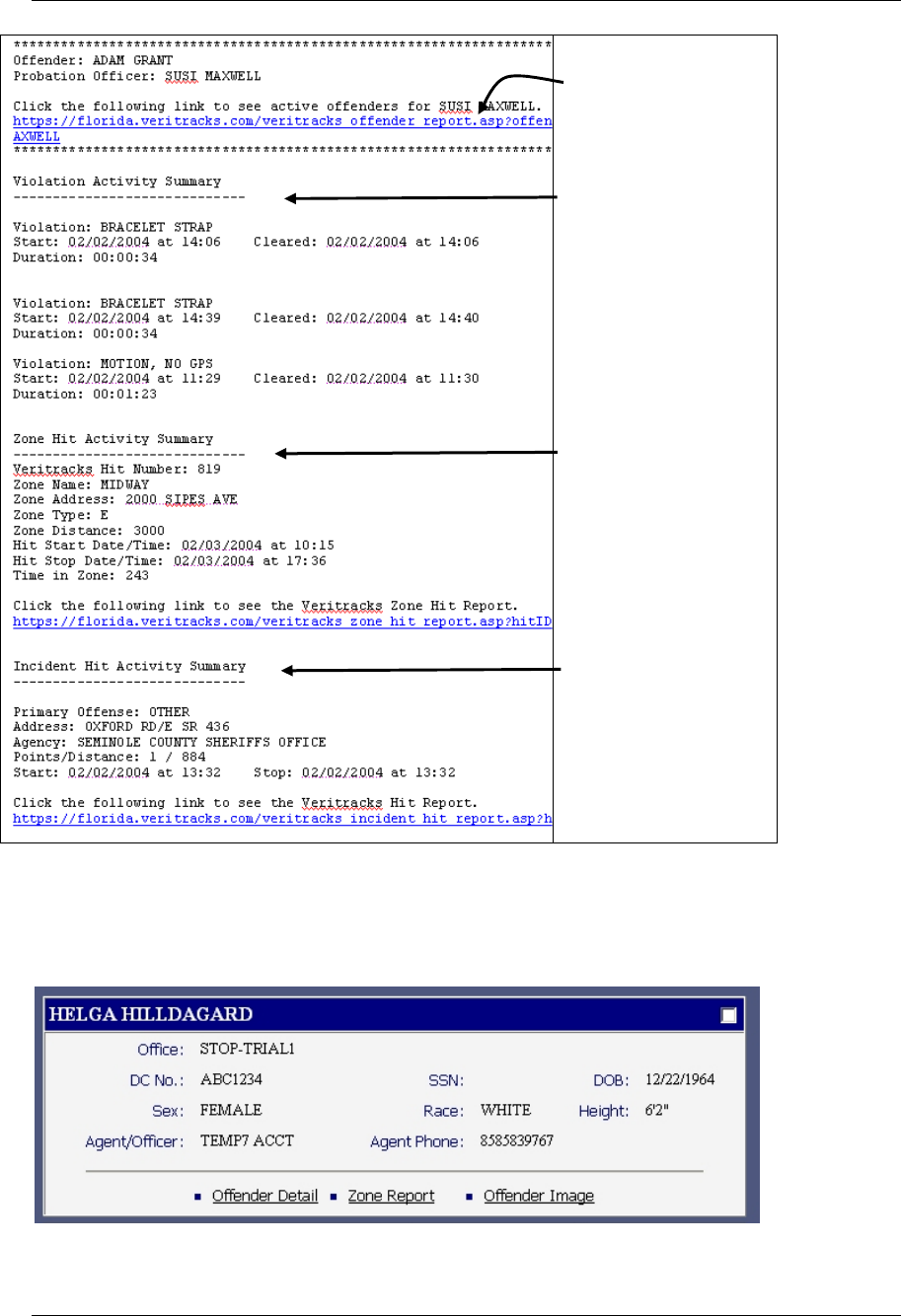 each supervised offender. The e-mail report contains hyperlinks that direct the supervising officer