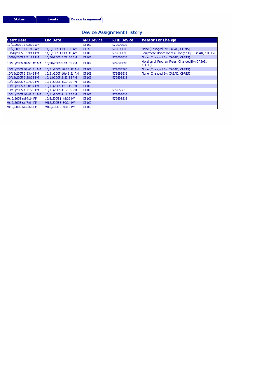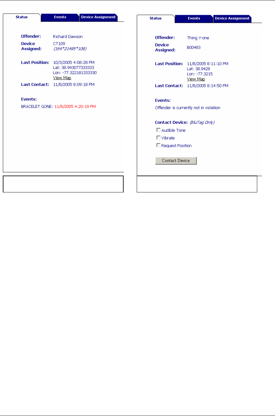 From the text report, click on the Offender Detail Link, which shows events and status changes for
