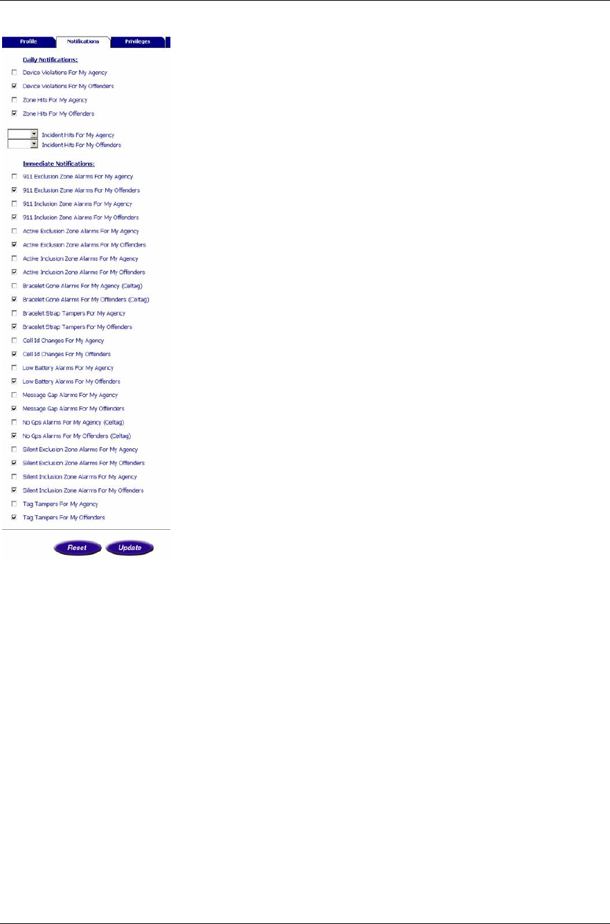 number and email address, and to select the types of notifications they wish to receive. Users can