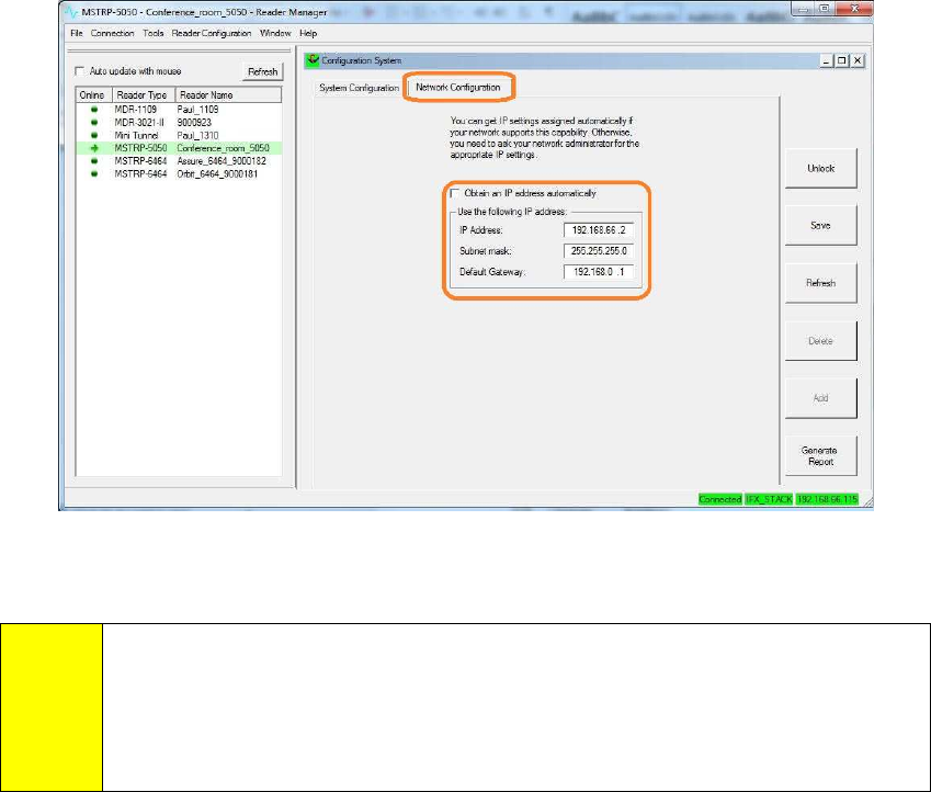 Ensure the IP address allocated to the reader is recorded for future reference.