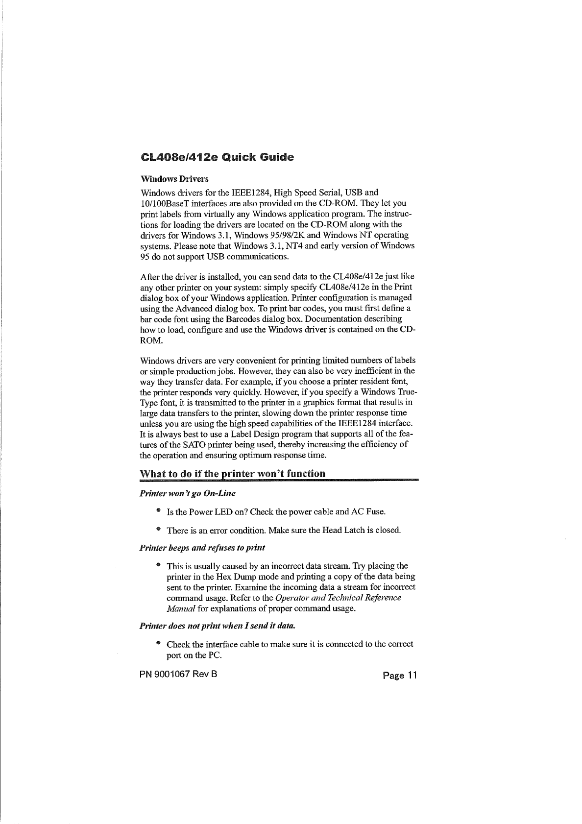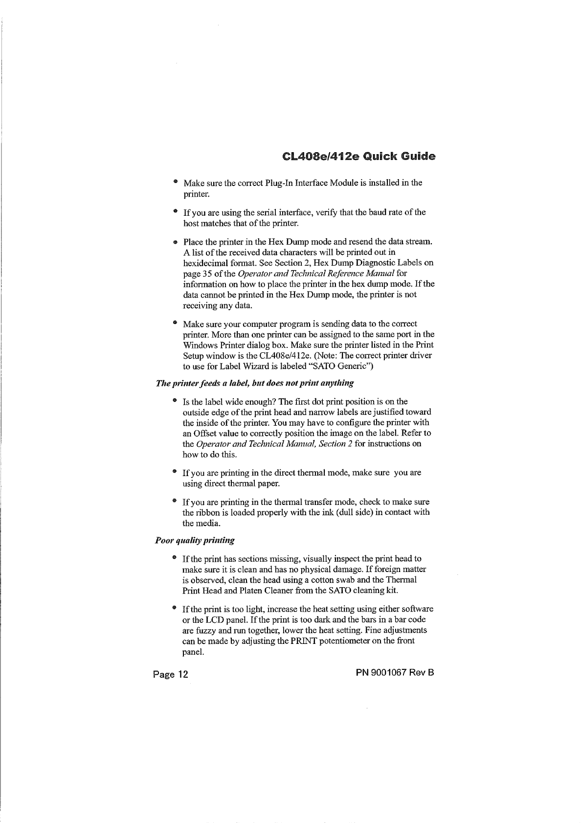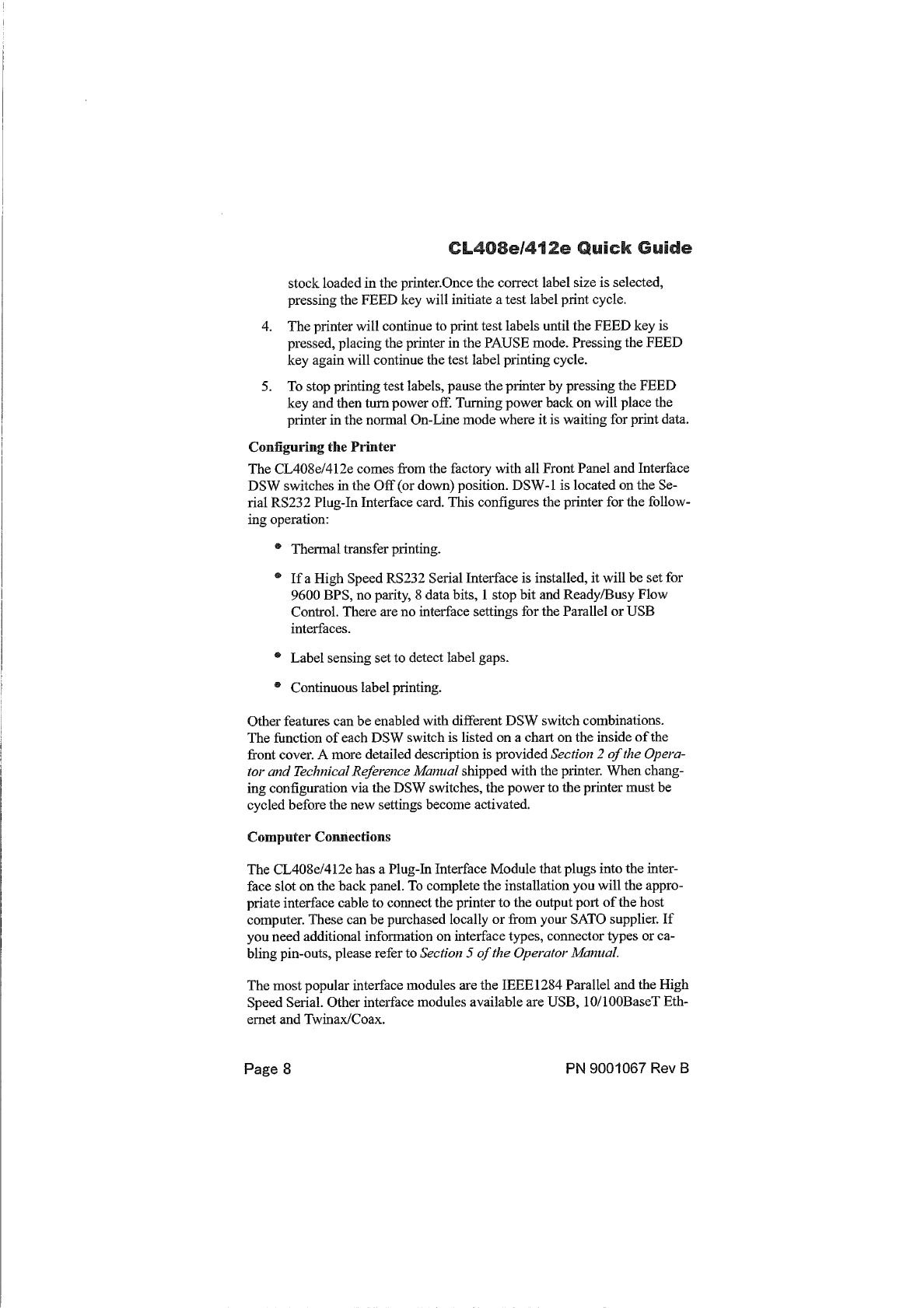 Sato Corporation CL408e/CL412e with MP 9310 RFID reader Manual