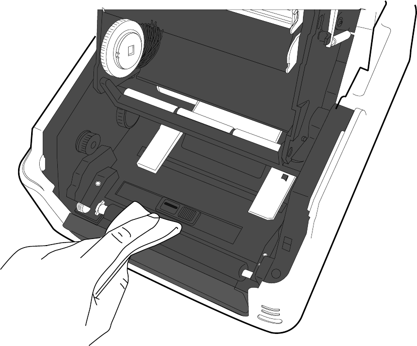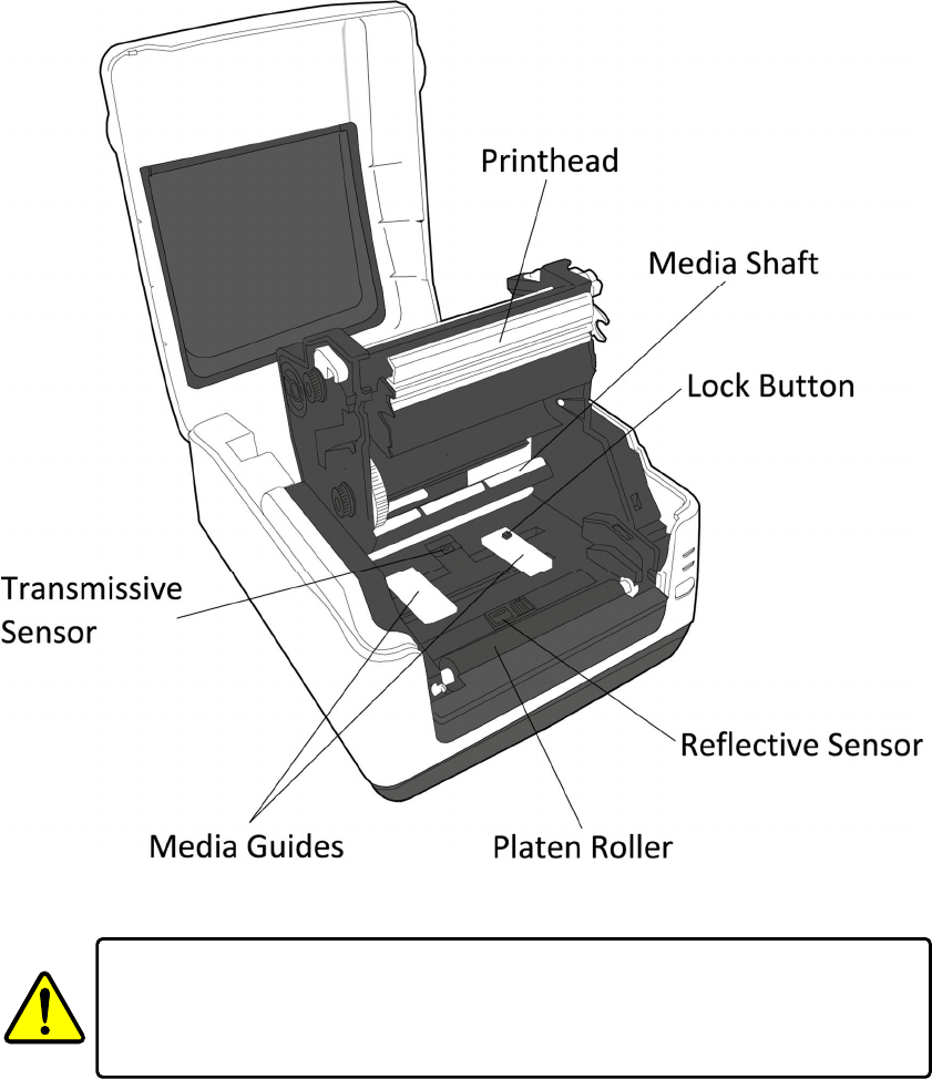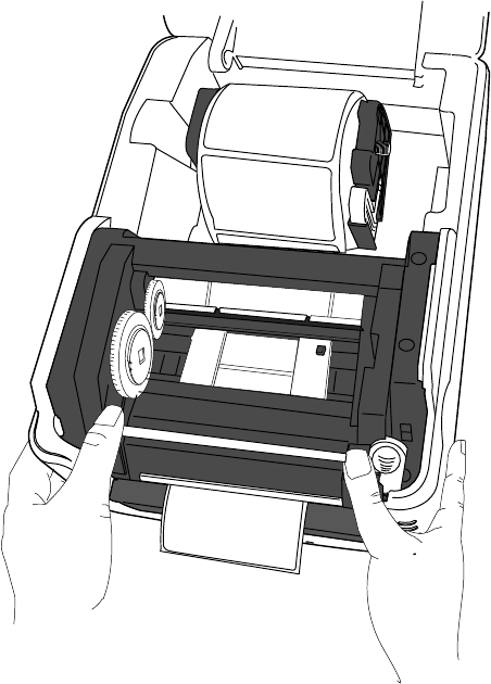When loading media roll, be careful not to get your fingers