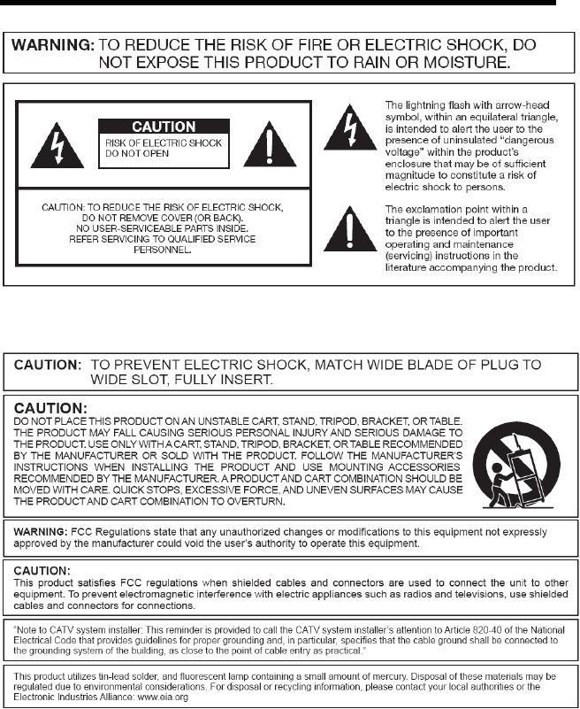 12. Use only with the cart, stand, tripod, bracket, or table specified by the