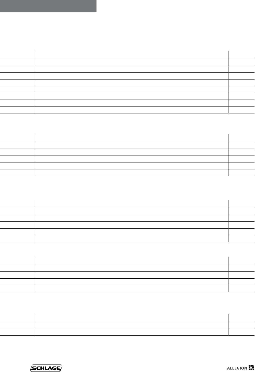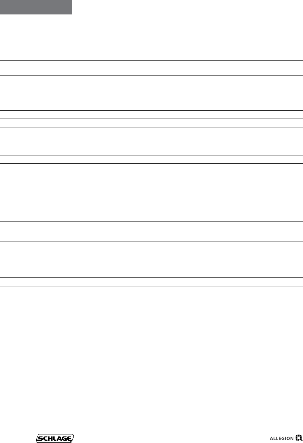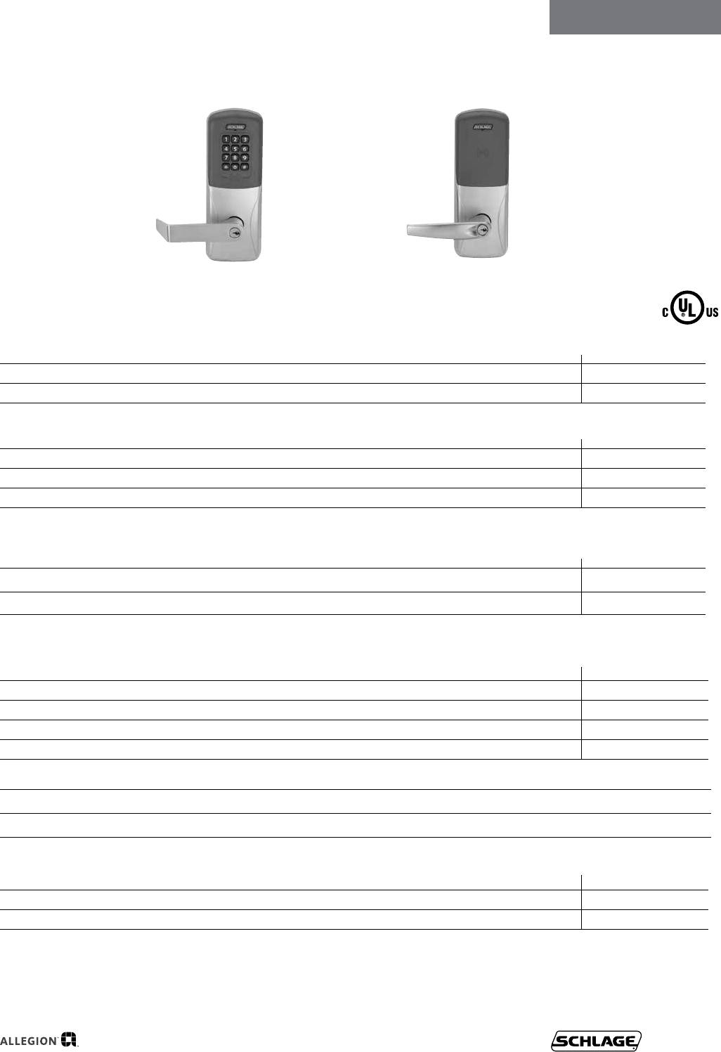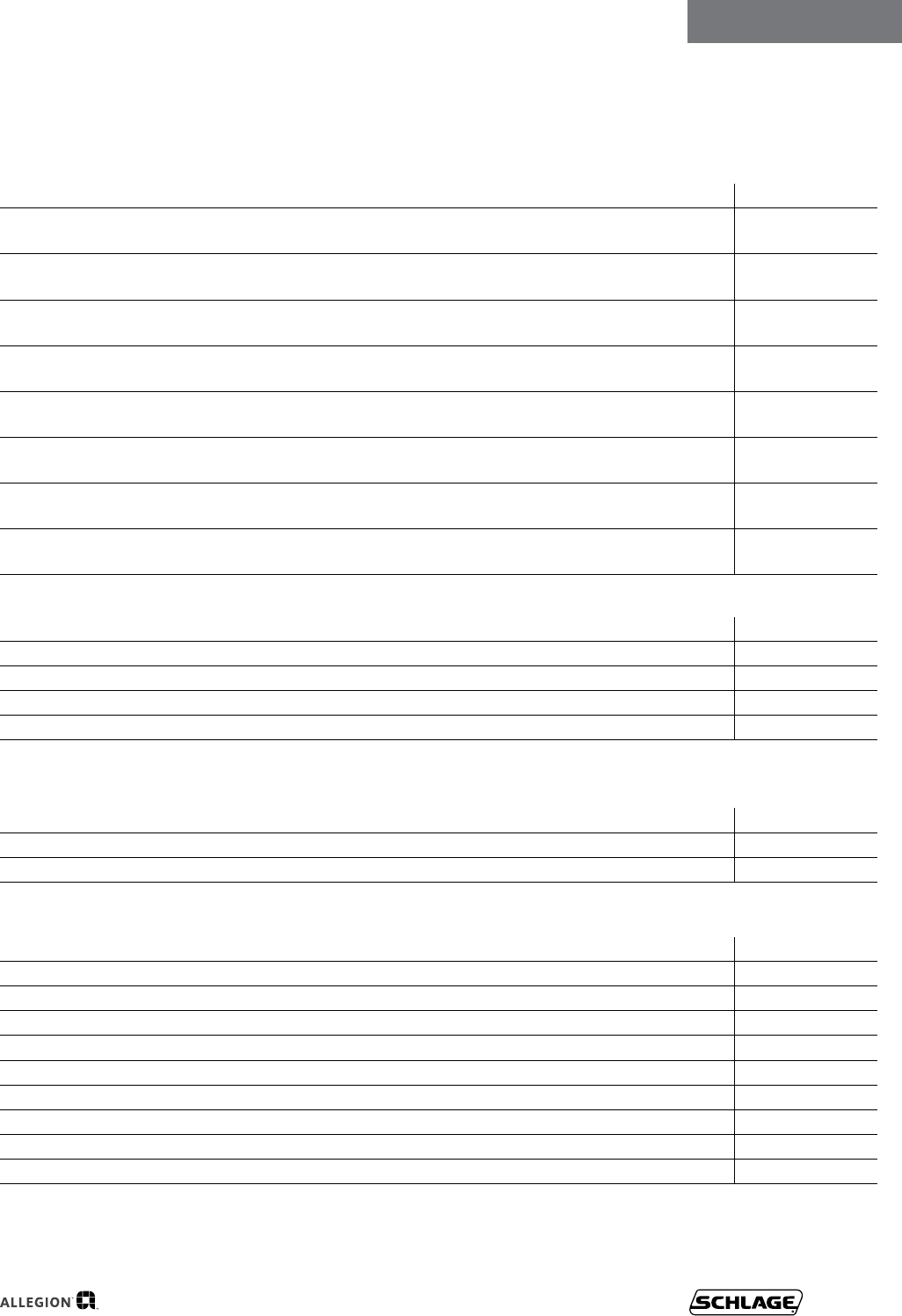 User Manual: Schlage Residential 2017 Schlage Residential Price Book Price Book