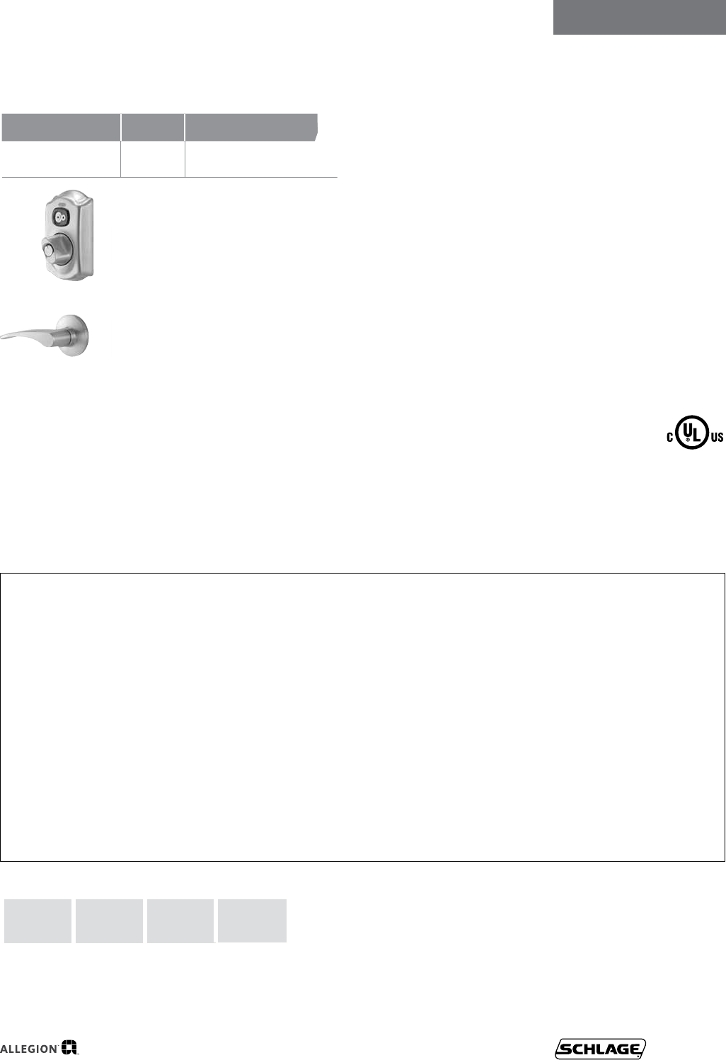 conditionsofthiswarranty,Schlageextendsalifetimelimitedmechanicalandnishwarrantyandaone-yearlimit-