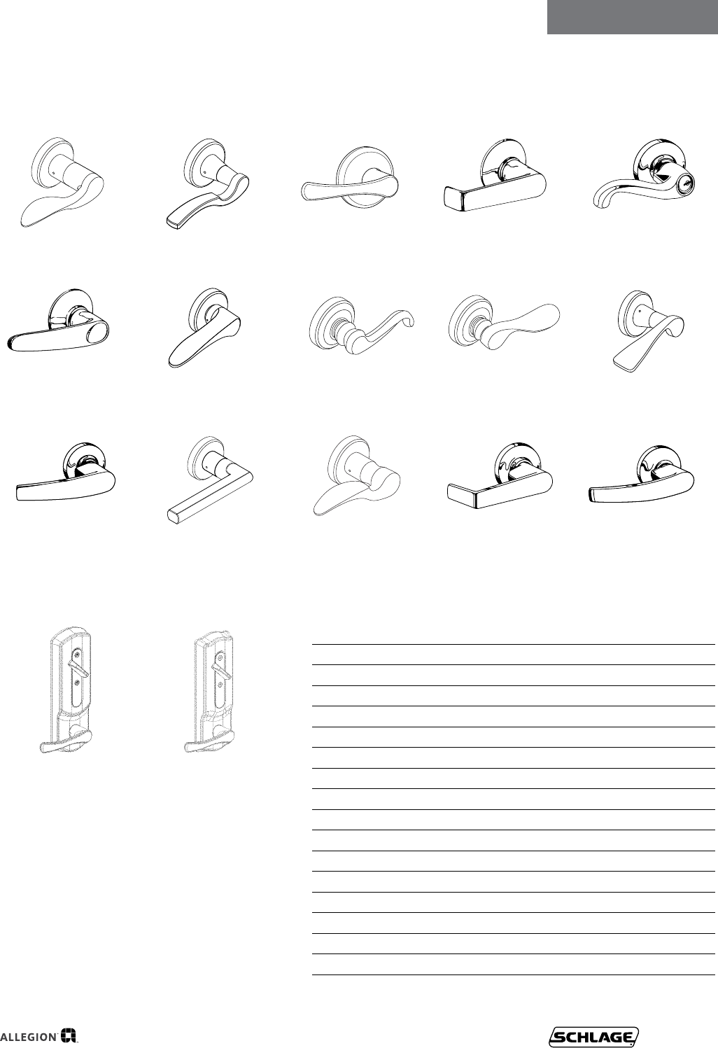 Finish codes & descriptions .......Levers-14