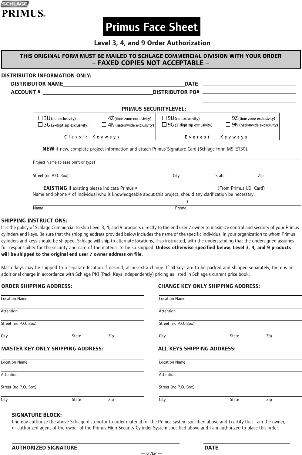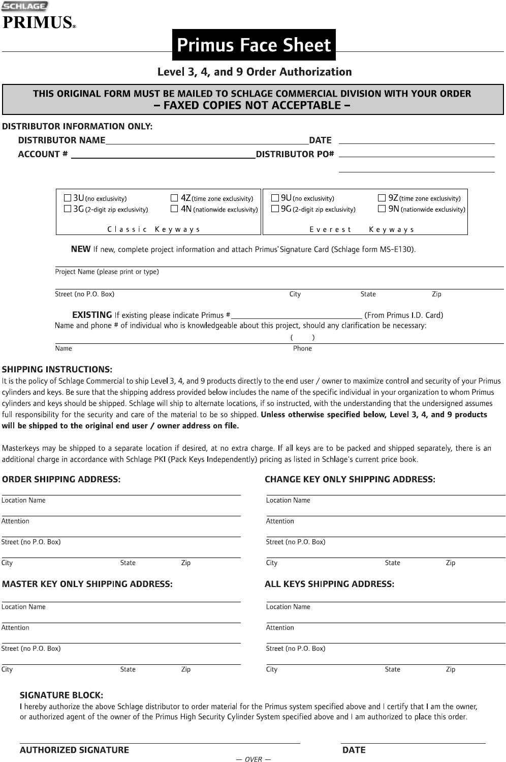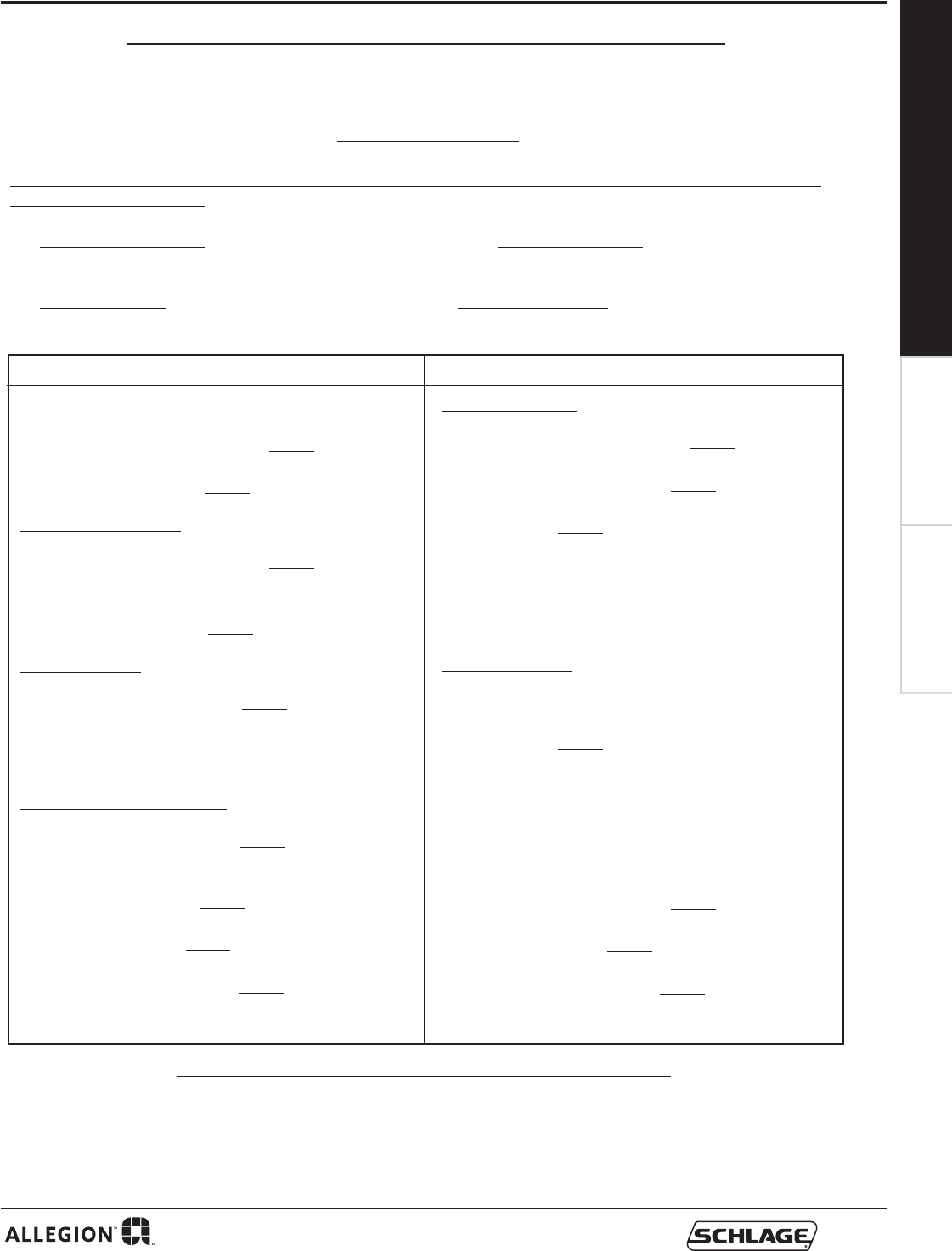 Email: Order_Entry_Schlage_Commercial@allegion.com