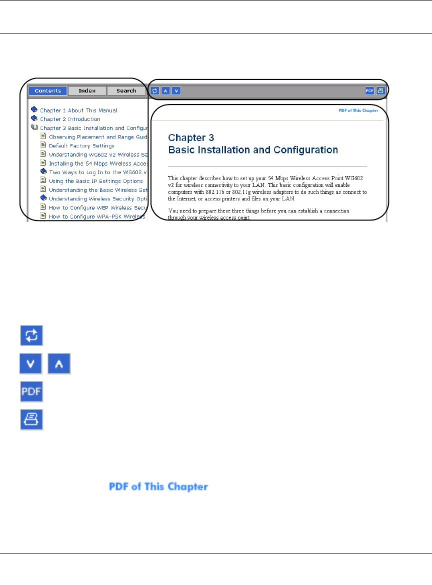 3. Right pane. Use the right pane to view the contents of the manual. Also, each page of the