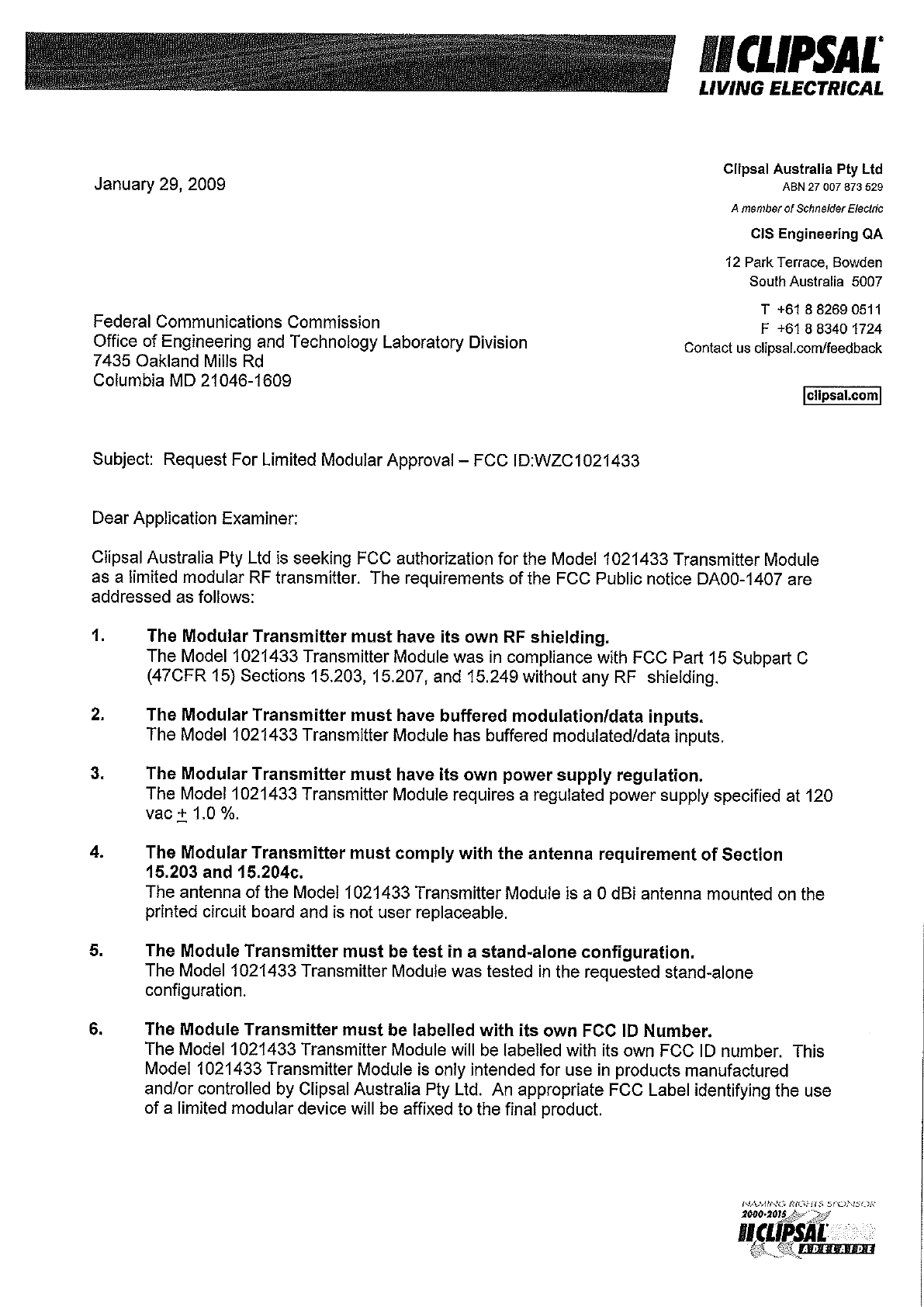 Schneider Electric (Australia) Pty. Ltd. C-Bus Modular Transmitter Exhibit 8