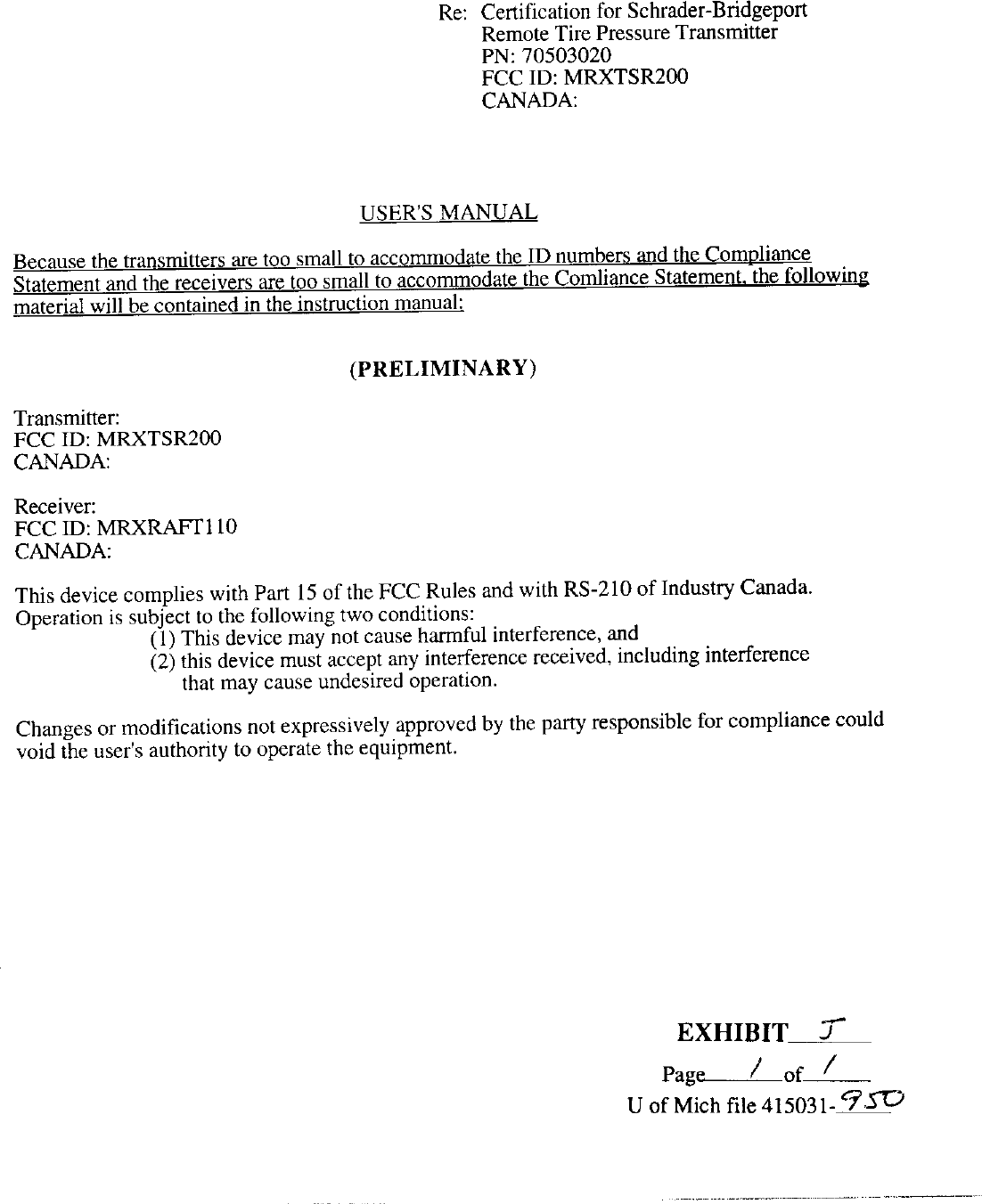 Schrader Electronics TSR200 Tire Pressure Monitor Transmitter User Manual 57117