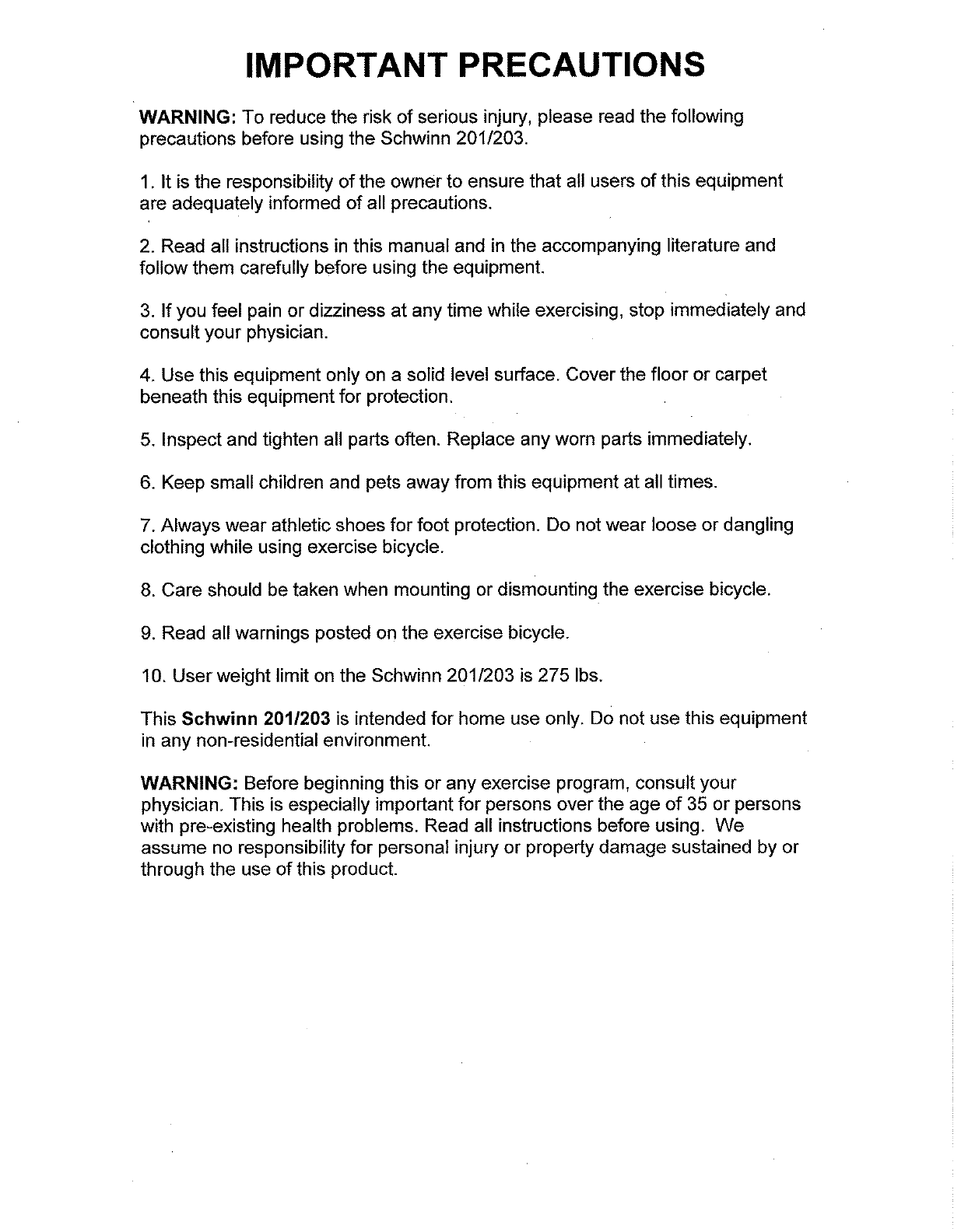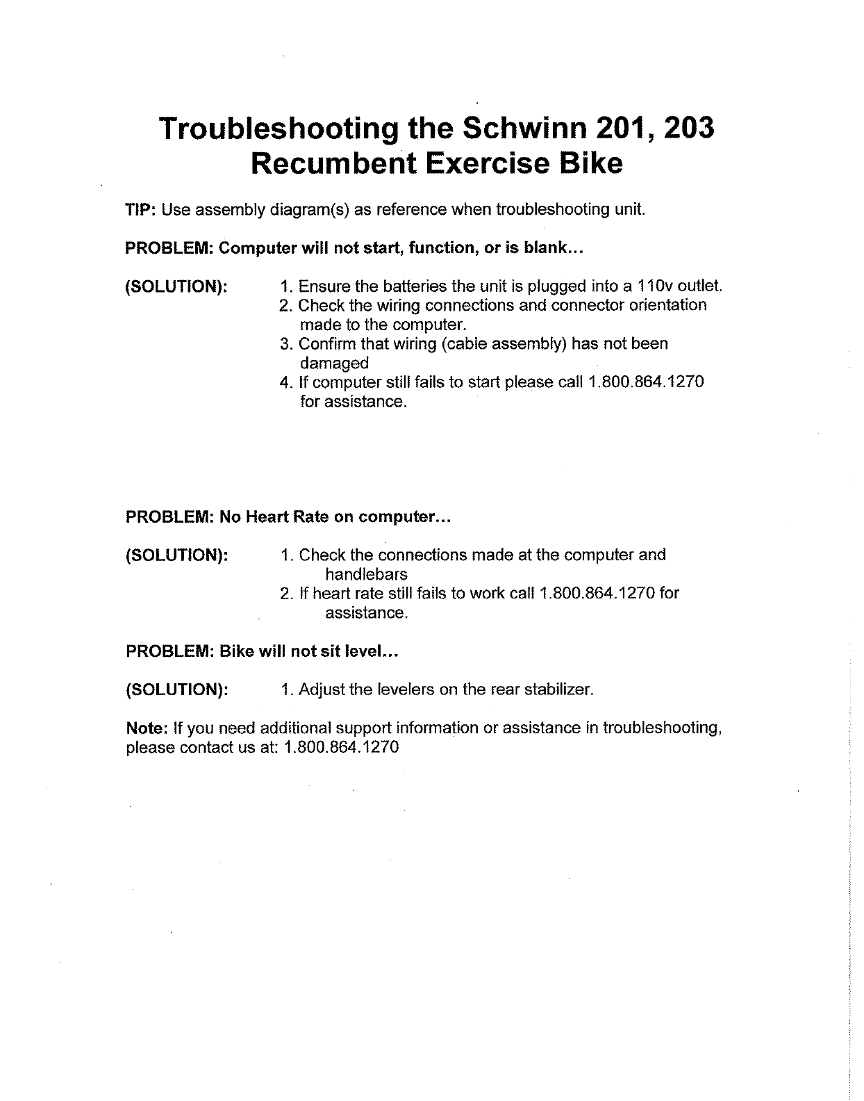 Schwinn 203 Recumbent Exercise Bike Assembly Manual SCH_201-203_AM_web Troubleshoot Schwinn 203 Recumbent Exercise Bike Assembly |