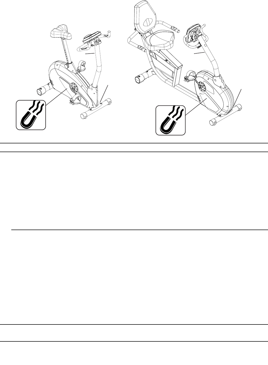 •Examinethismachineforloosepartsorsignsofwear.MonitortheSeat,Pedals,andCrankArmsclosely.Donotuseiffound
