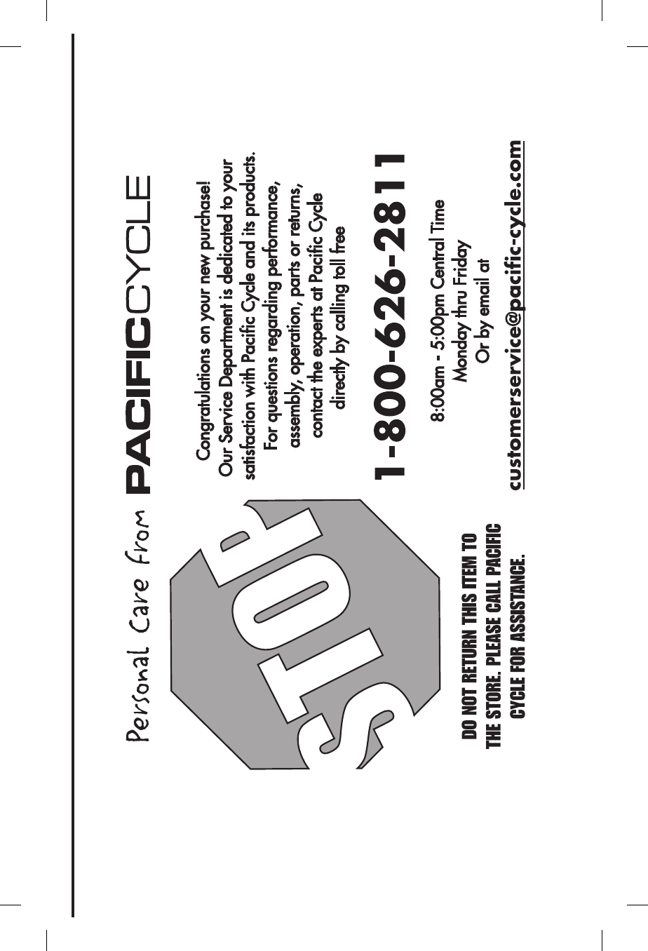 RETURN TRICYCLE TO DEALER. Please call 1-800-626-2811