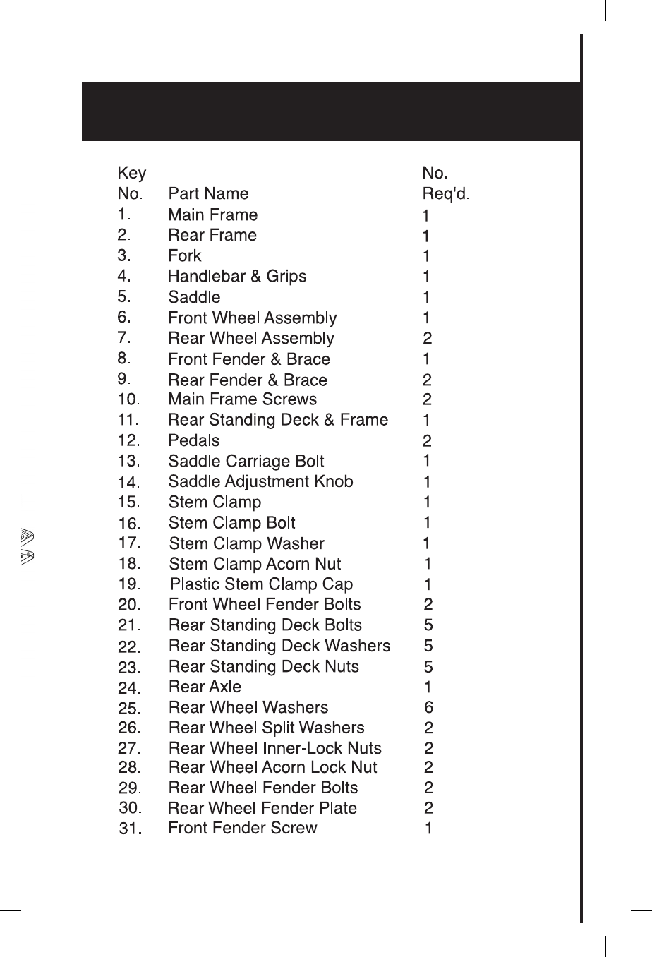 The entire tricycle frame is guaranteed against faulty materials and work-