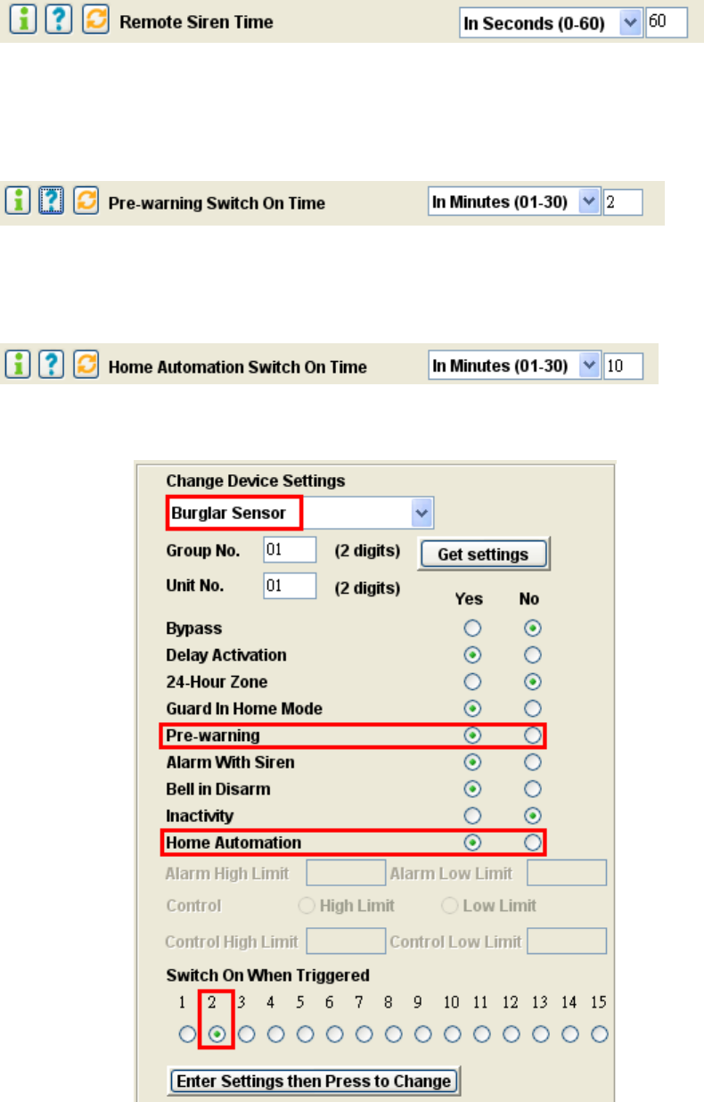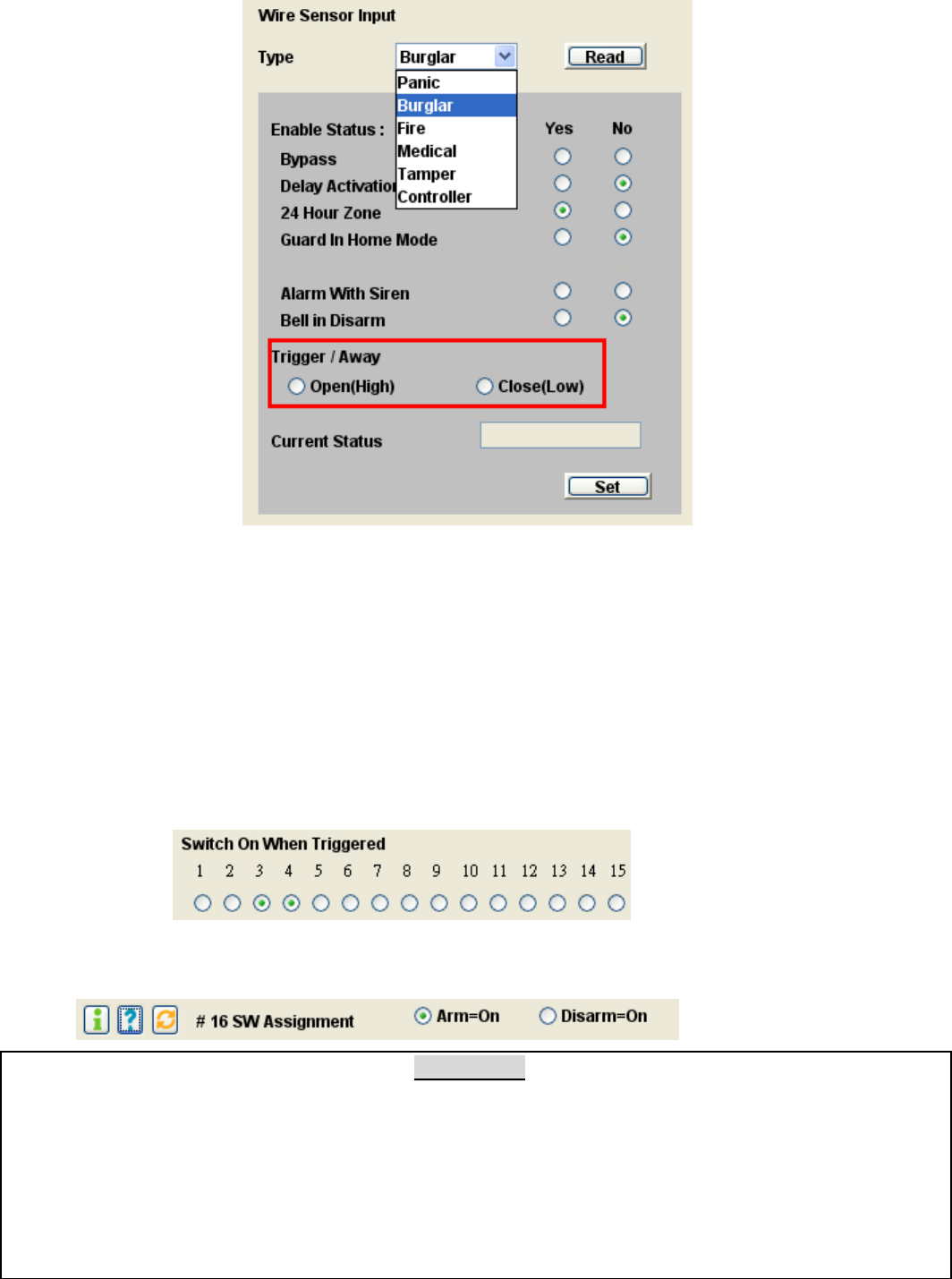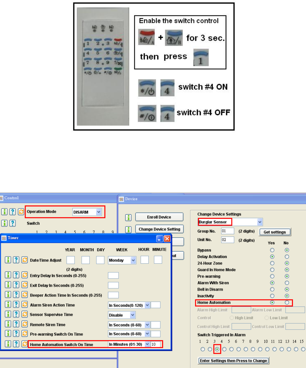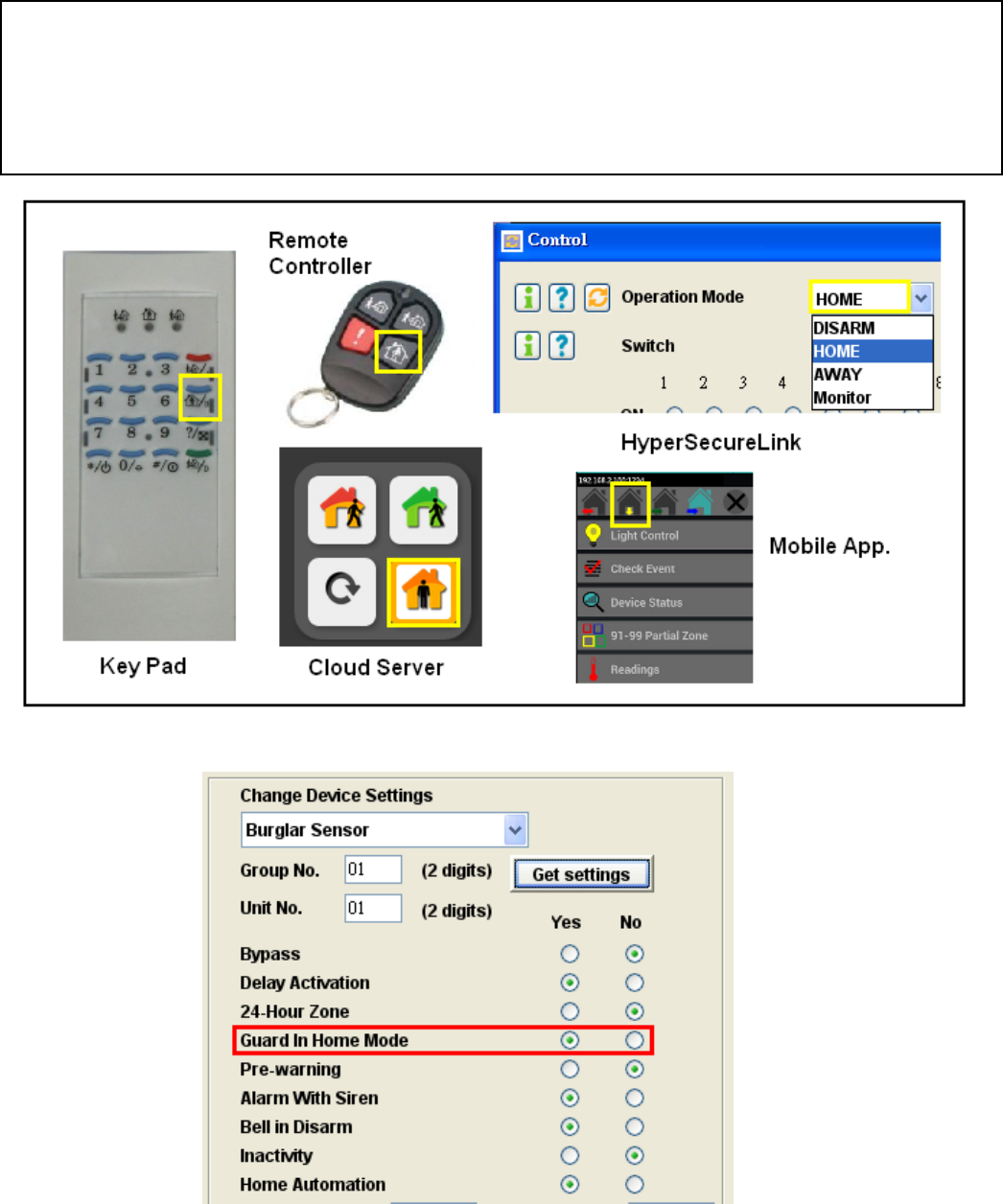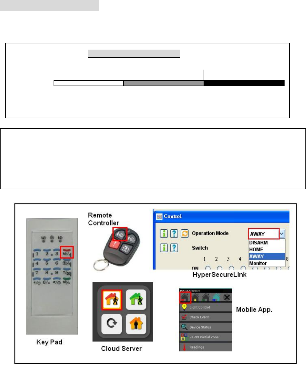 PW= Pre-warning, HA= Home Automation, A= Away, H=Home, D=Disarm, M=Monitor, S=Motion Stop
