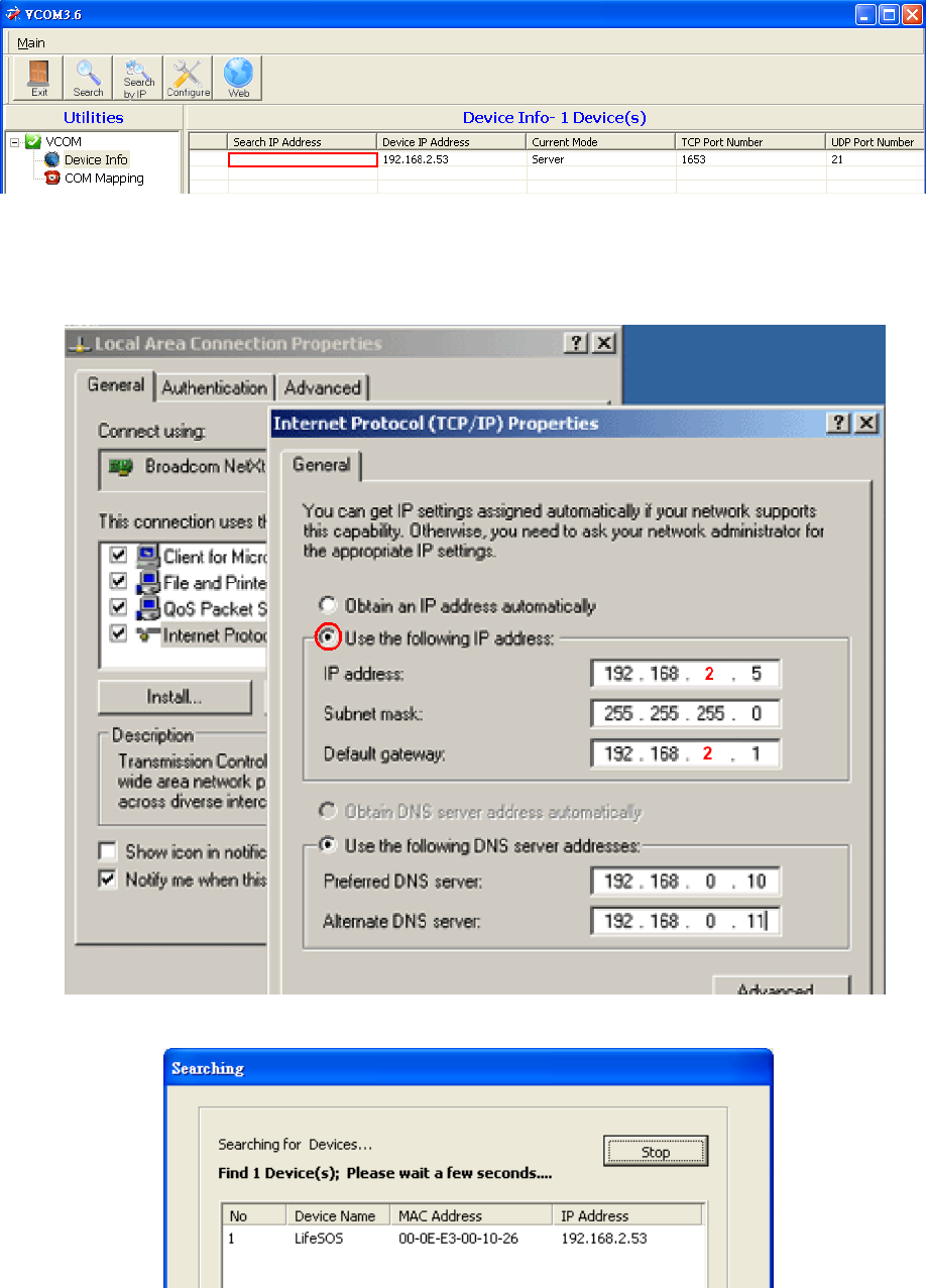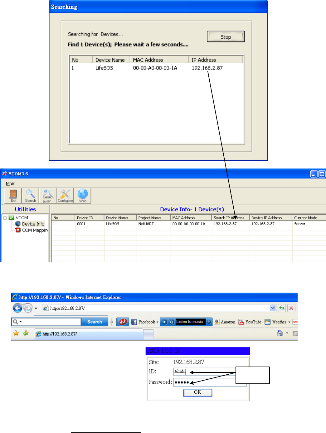 Use VCOM software to locate the new IP address and enter the LS-10 setup web page again.