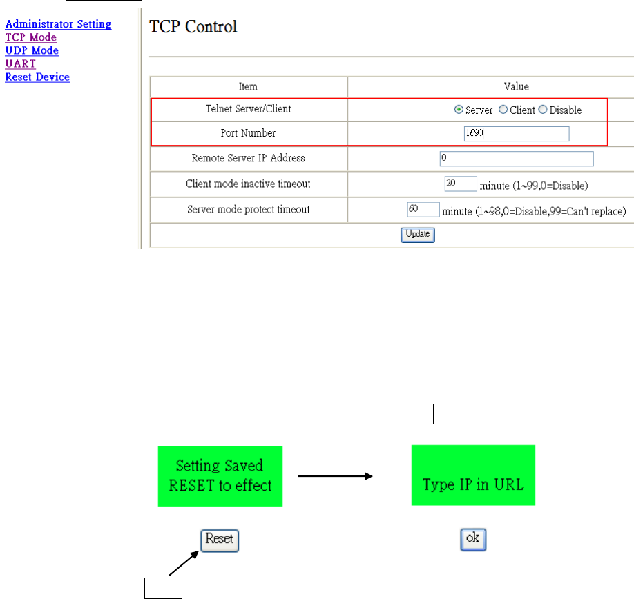 * Select TCP Mode and change the settings according to the information from the web server or CMS
