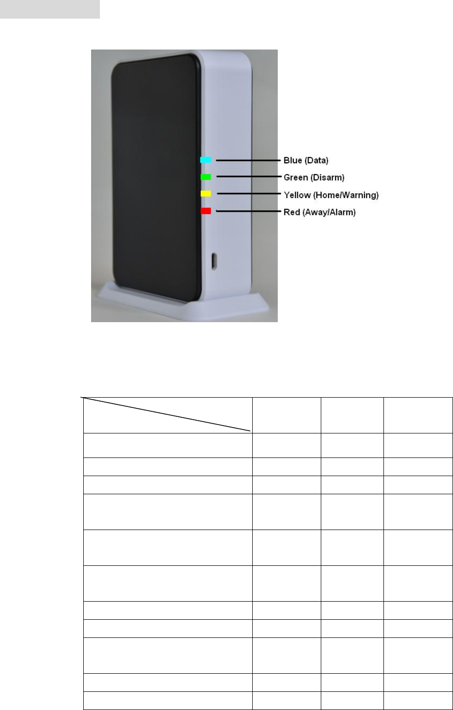 4 LED display for Away/ Home/ Disarm and Data transmission indication.