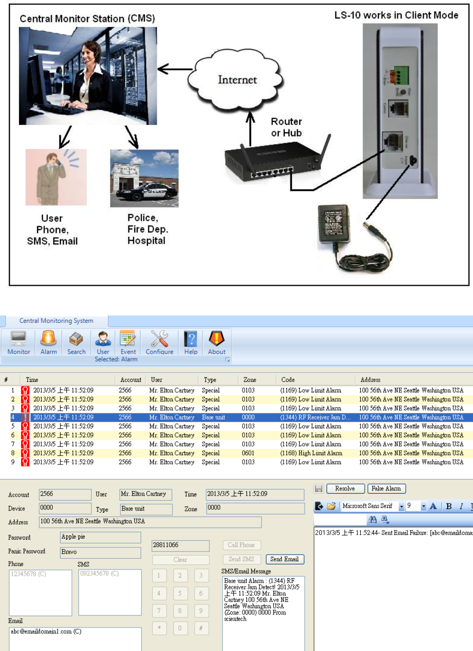 3.5 Connects to a Central Monitor Station to Get Alarm Service from the Service Provider.