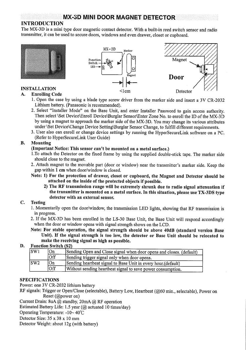 Scientech Electronics MXDN Mini Door Sensor User Manual