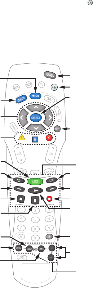 by the DVR, including the PIP feature, the remote must be in Cable mode. See