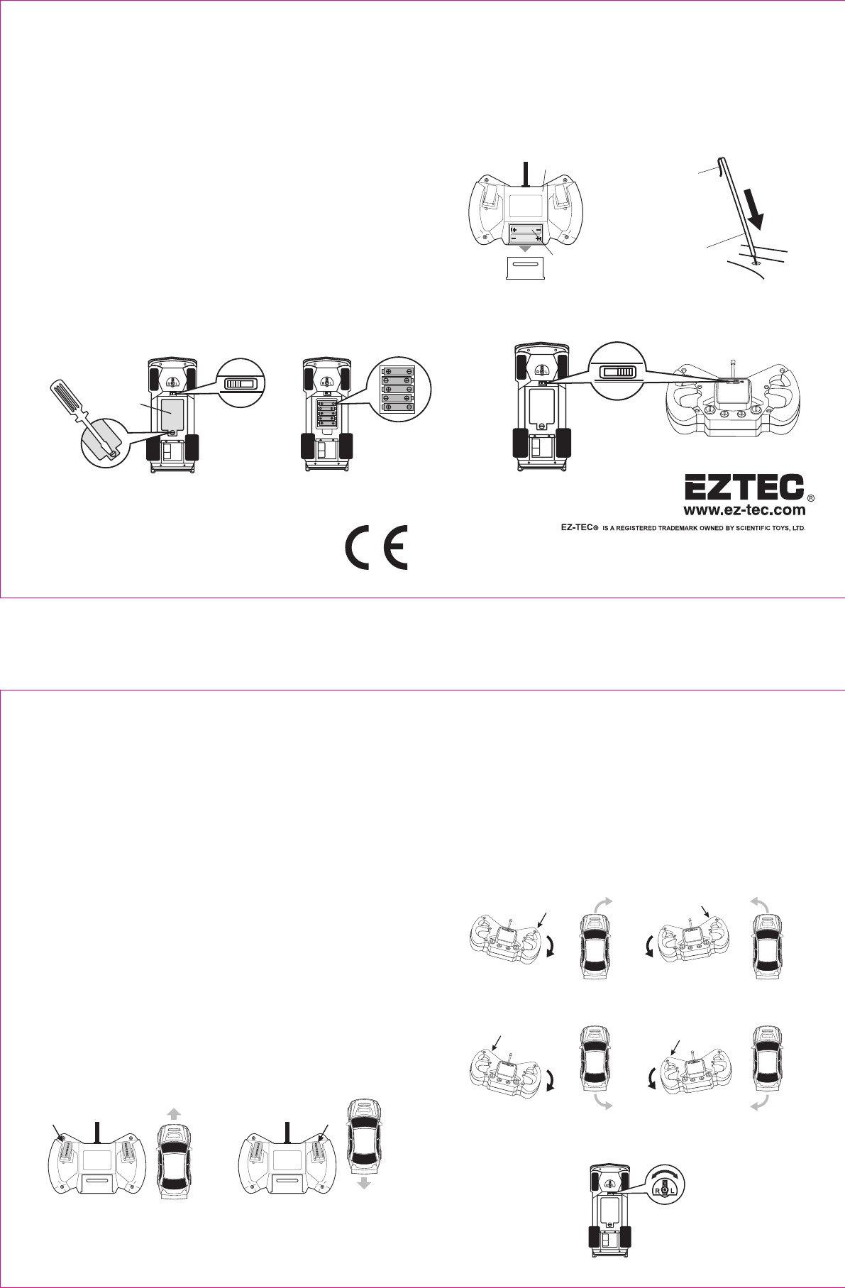 Remember to take out all batteries from vehicle and transmitter after playing.