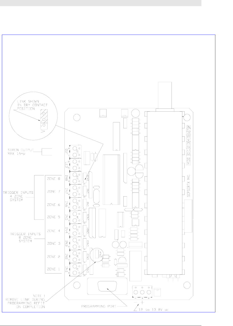 Open Collector (siren) output: 1A max