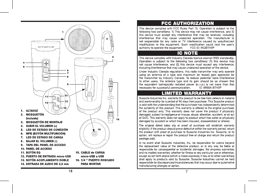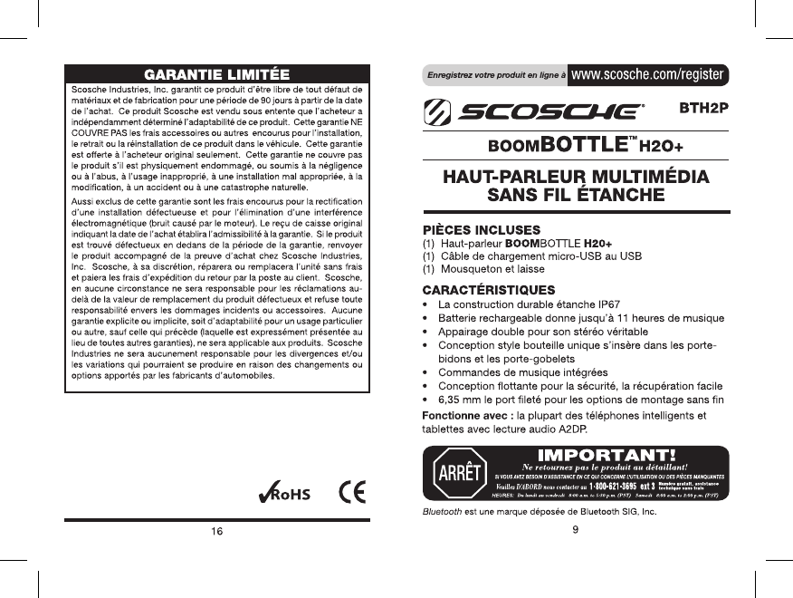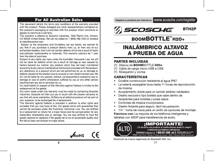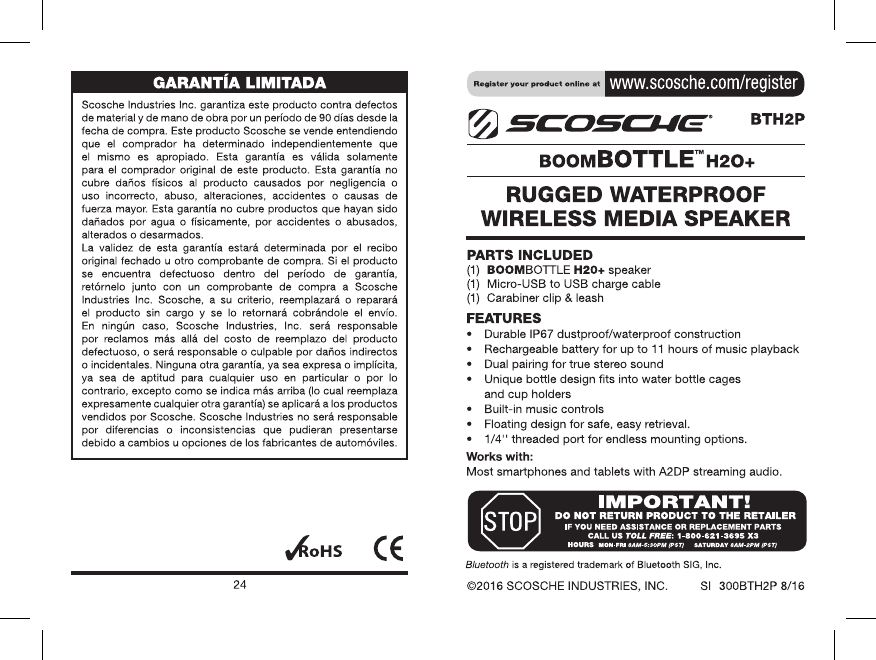 Scosche BTH2P Scosche BOOMBOTTLE H2O+ User Manual BTH2P Spread rev01