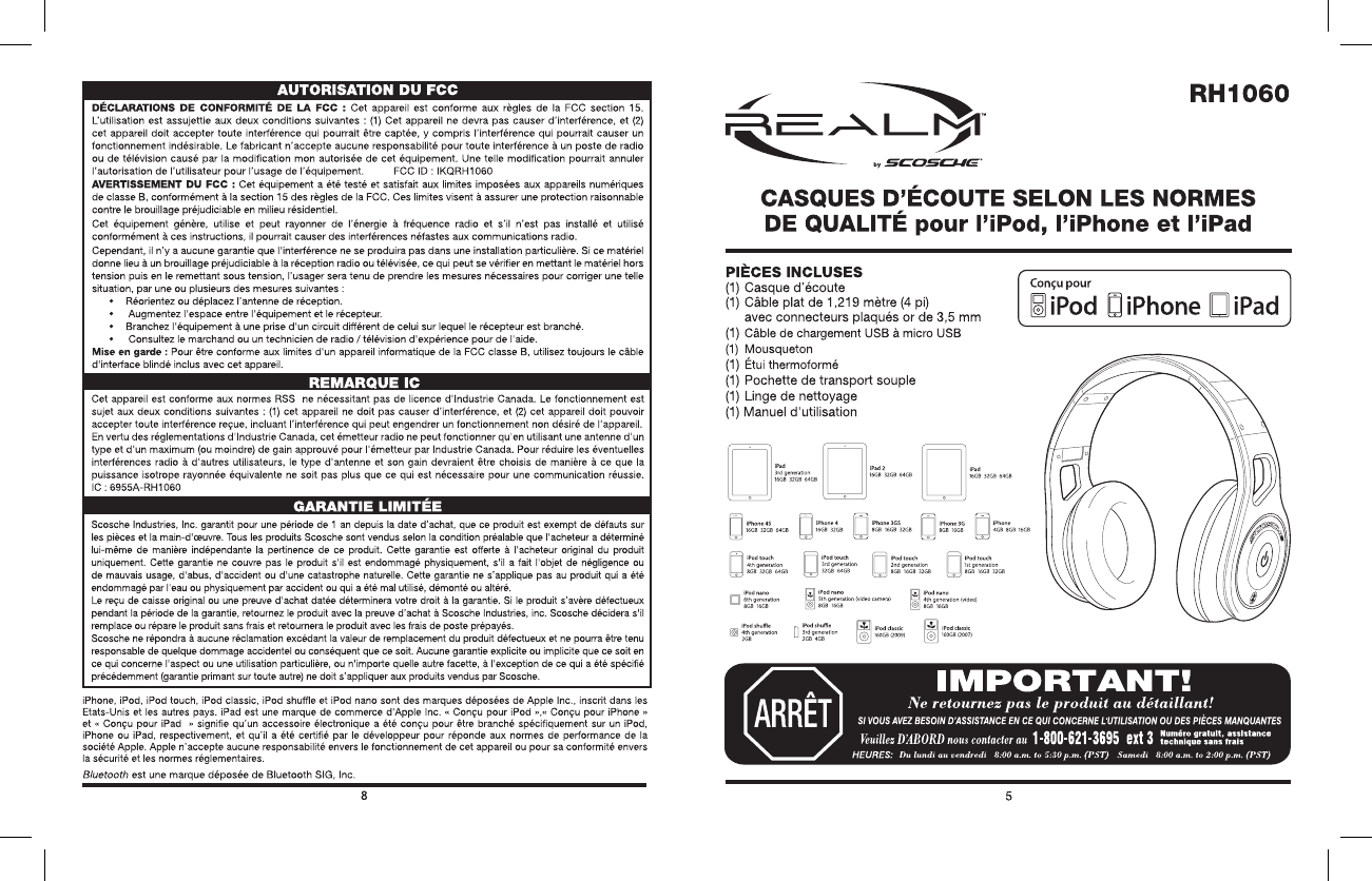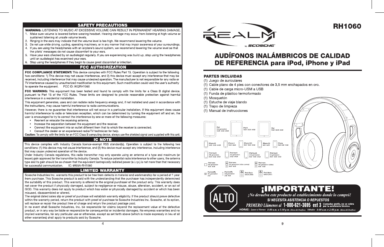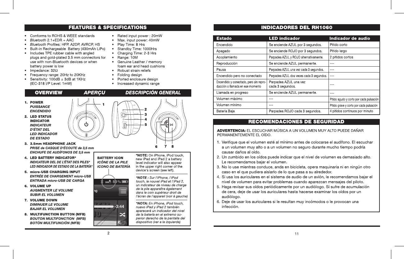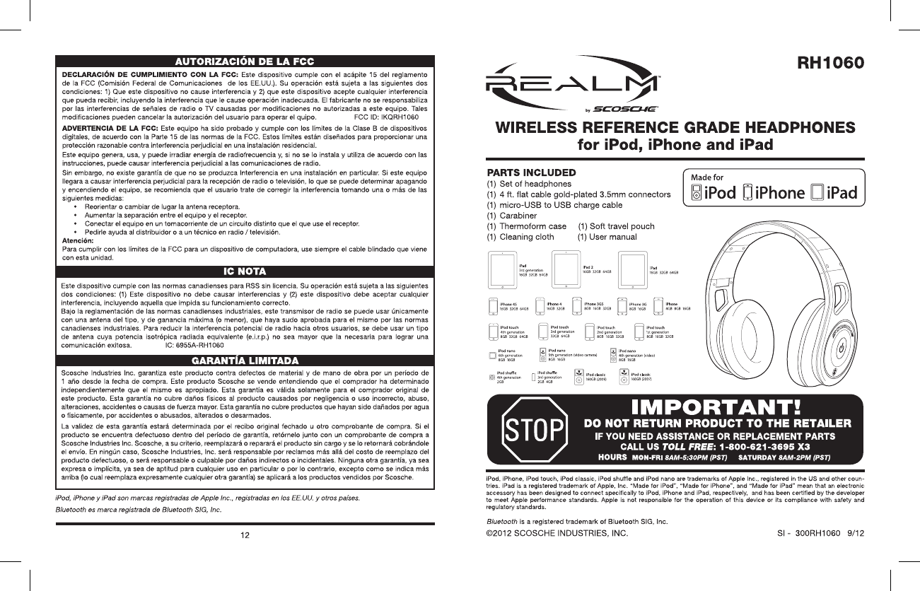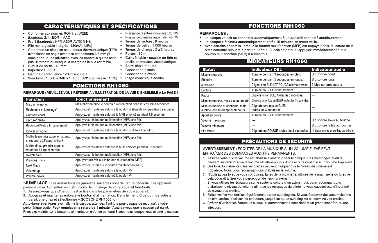 Scosche RH1060 Bluetooth Headphones User Manual RH1060 spread indd