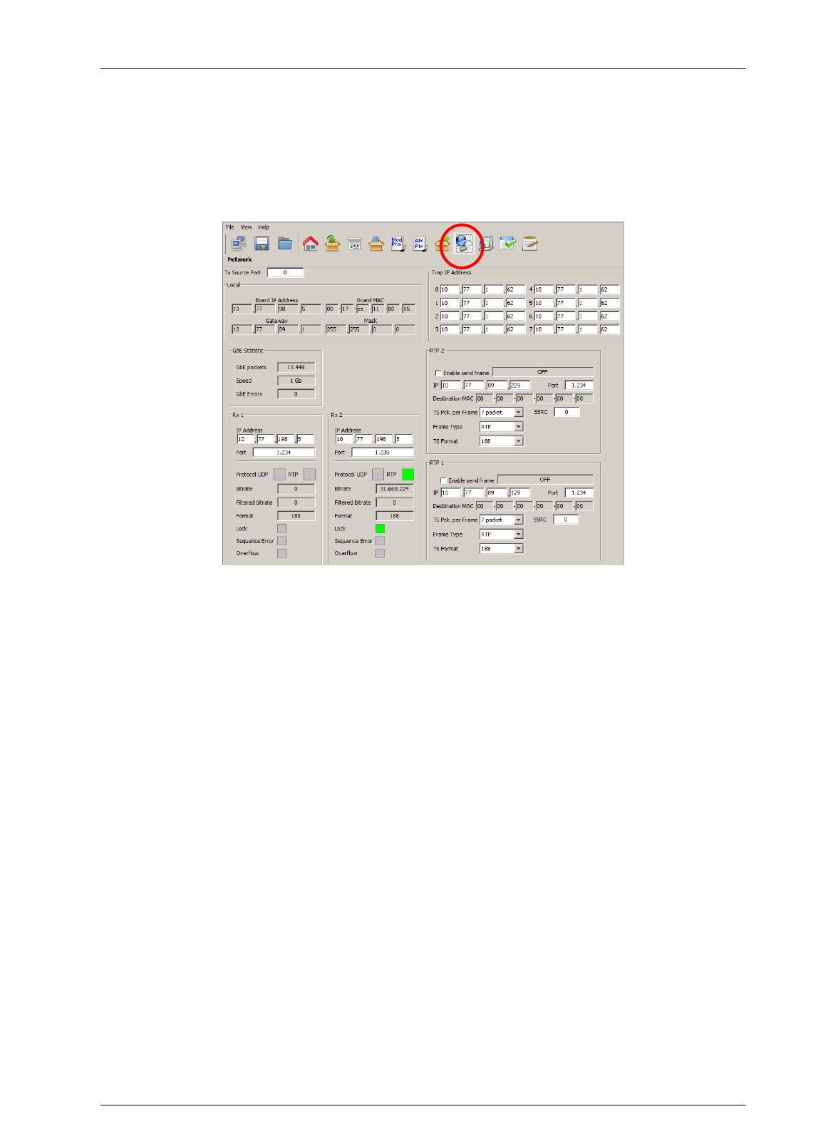 2. Insert the board IP address into the numeric field.