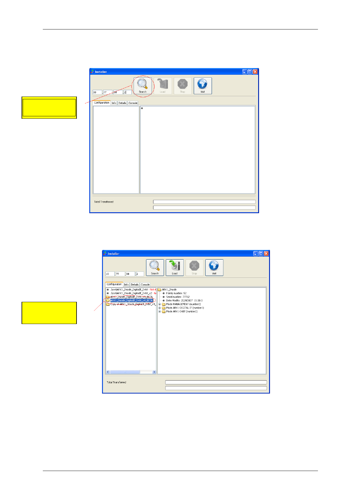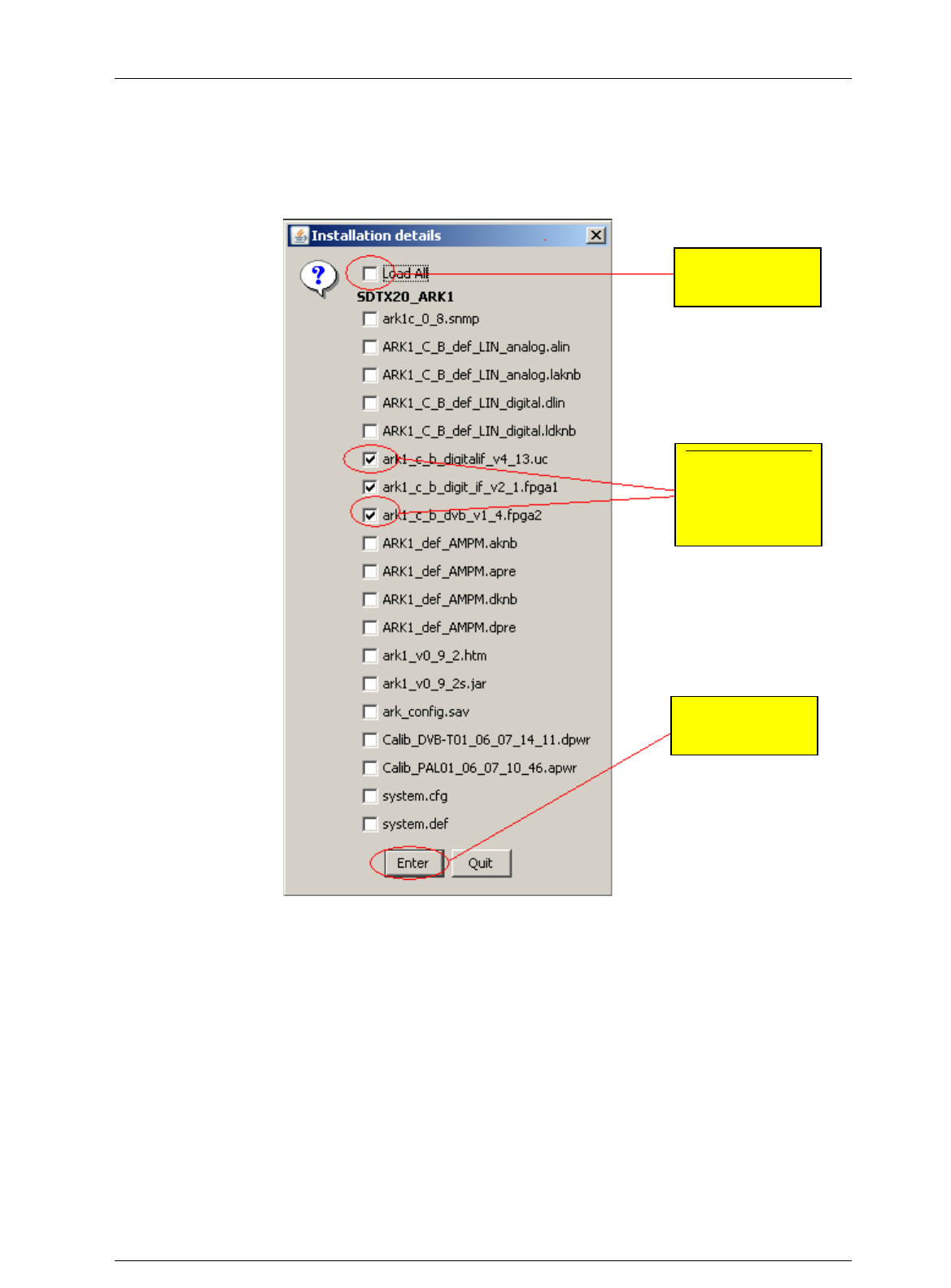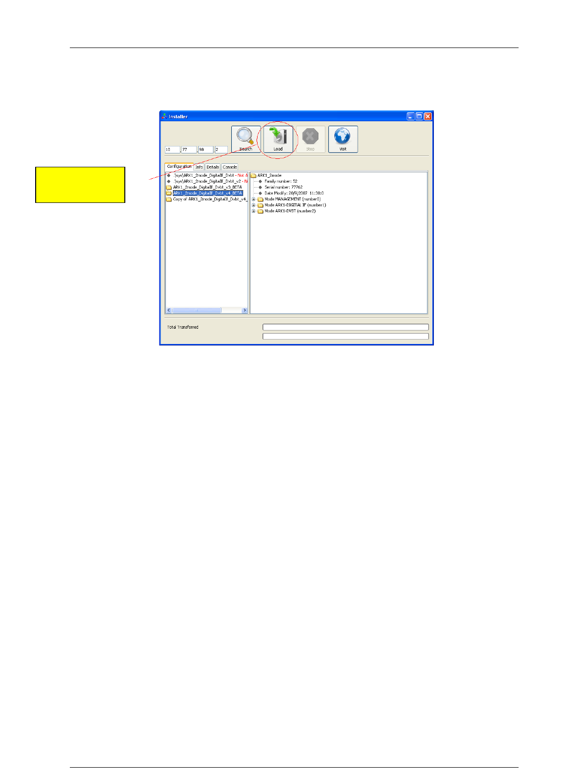 corresponding to the software version you want to load, otherwise click on the check