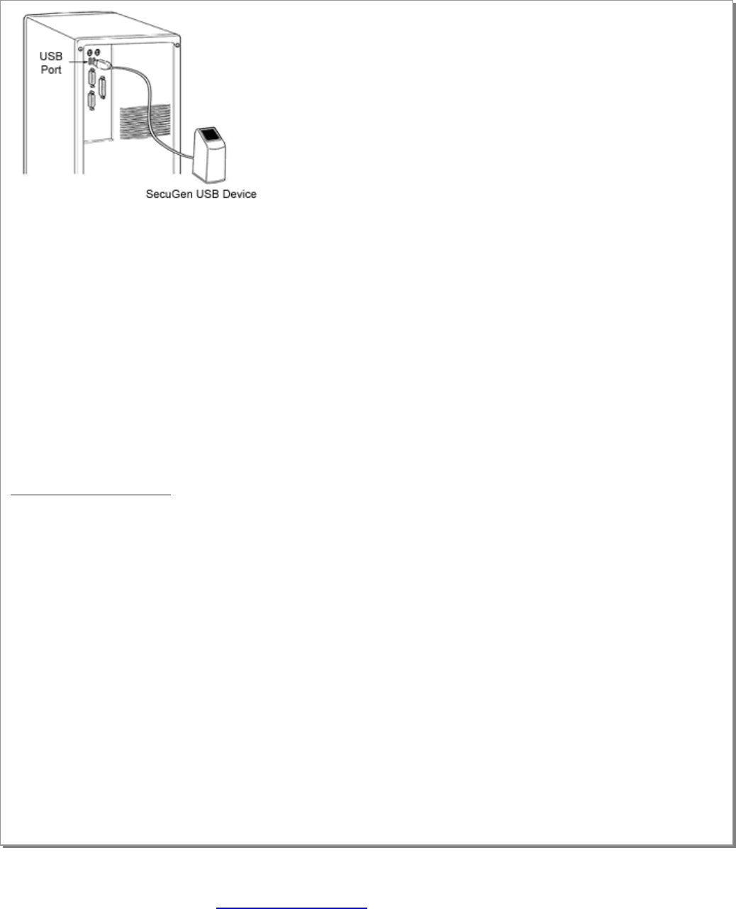 cannot be shared between the two devices. Instead, plug the SecuGen device into the host computer’s USB port.