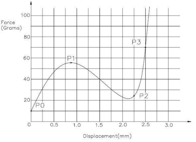 3) Operation force : Relationship between the operating force and travel is given by the following