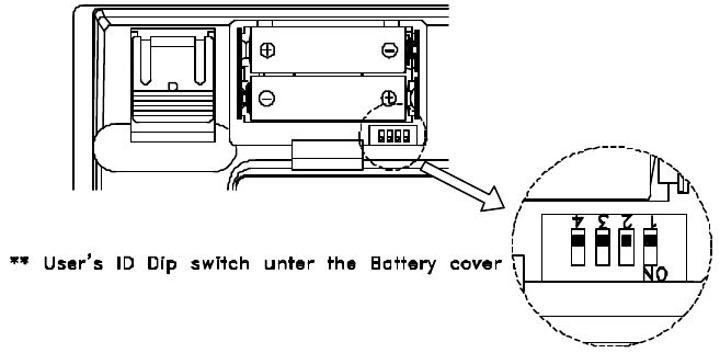 1. Set the User ID 4 bit Dipswitch located under battery cover on the keyboard side after removing