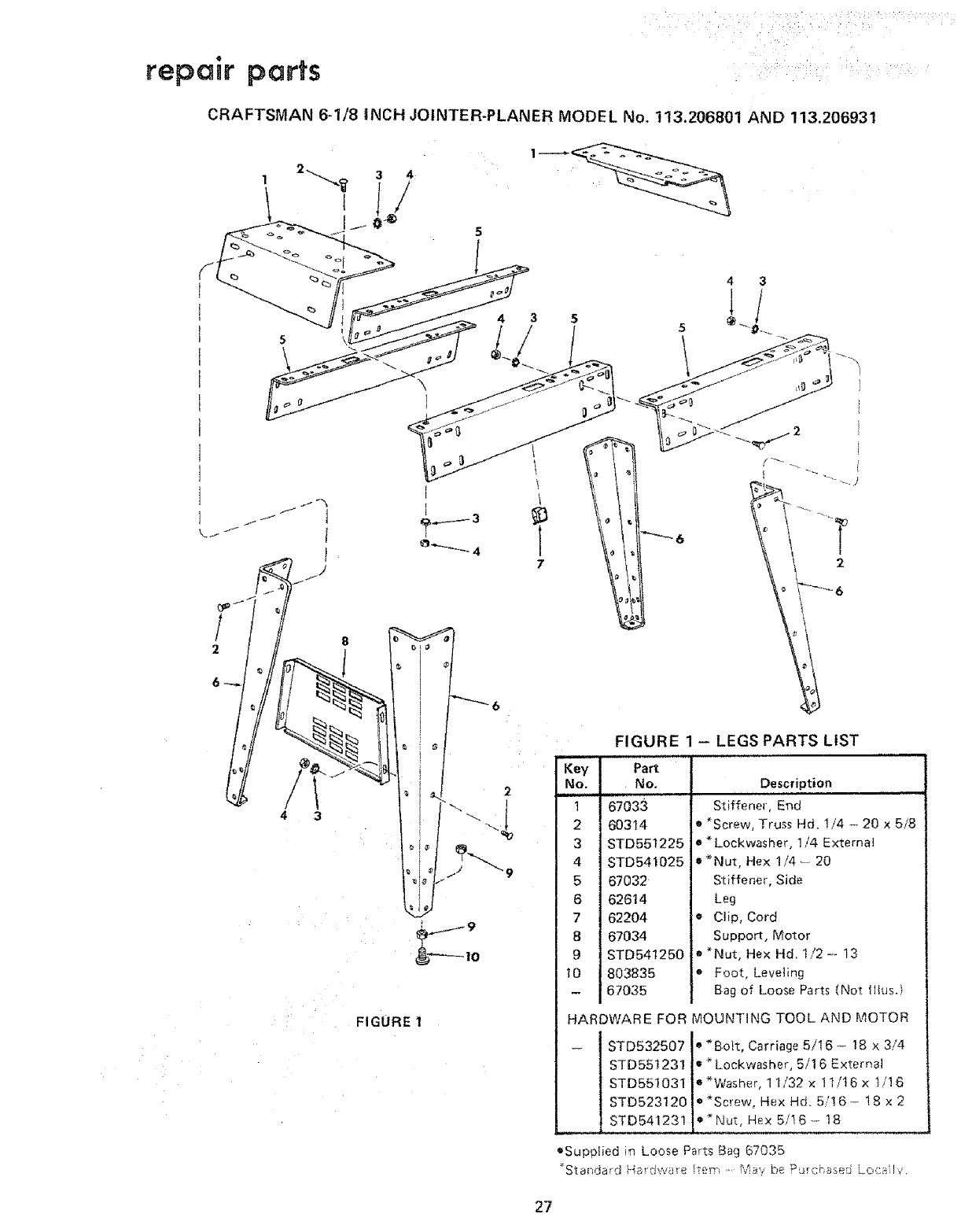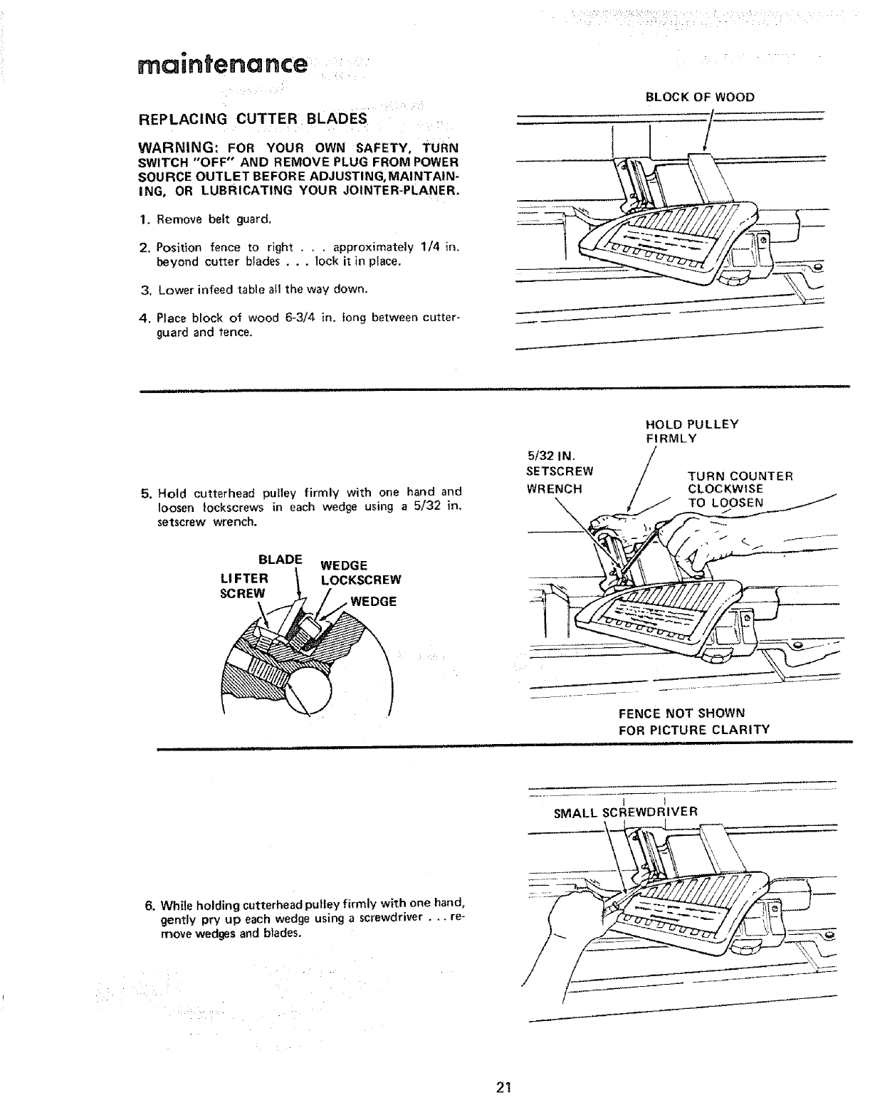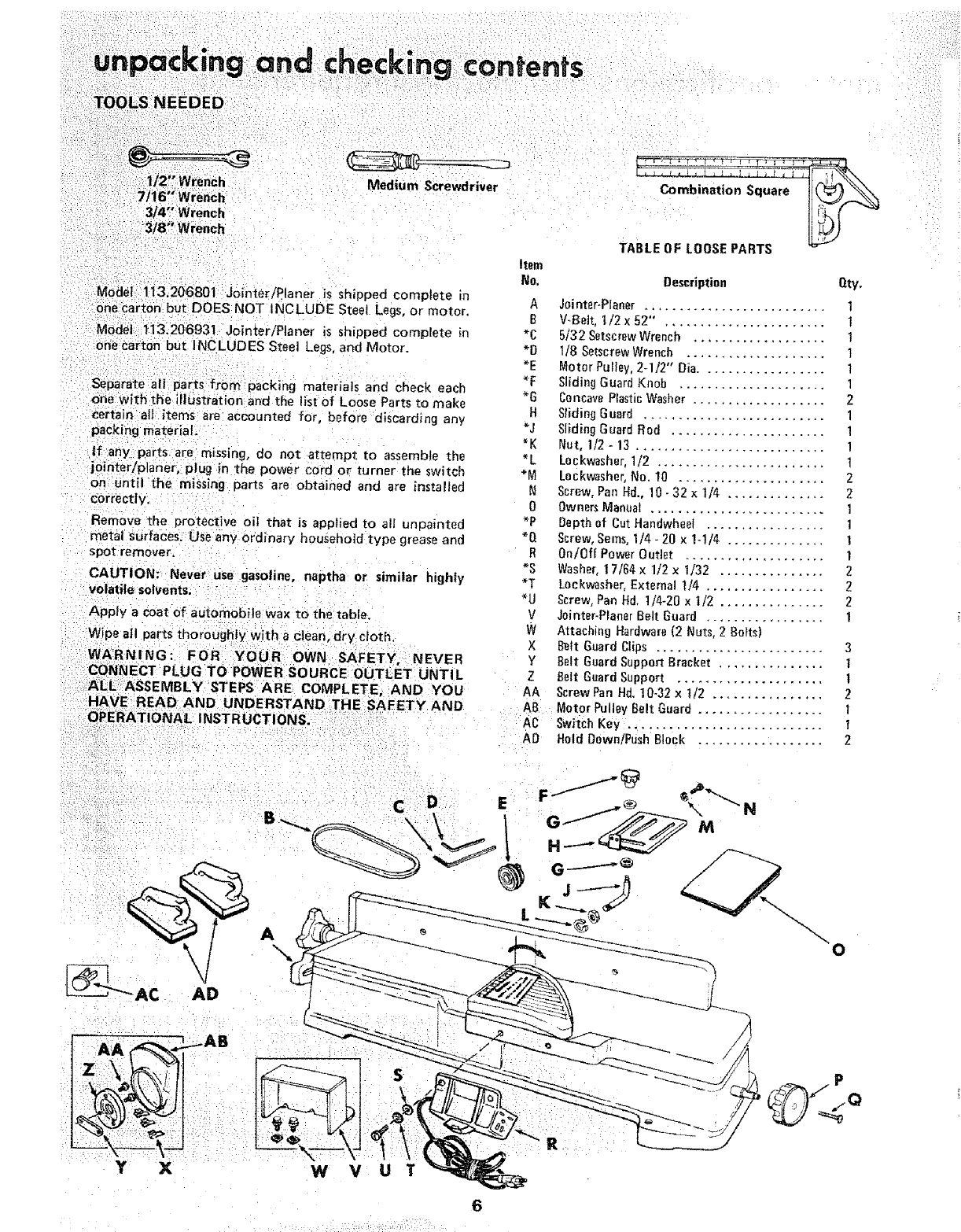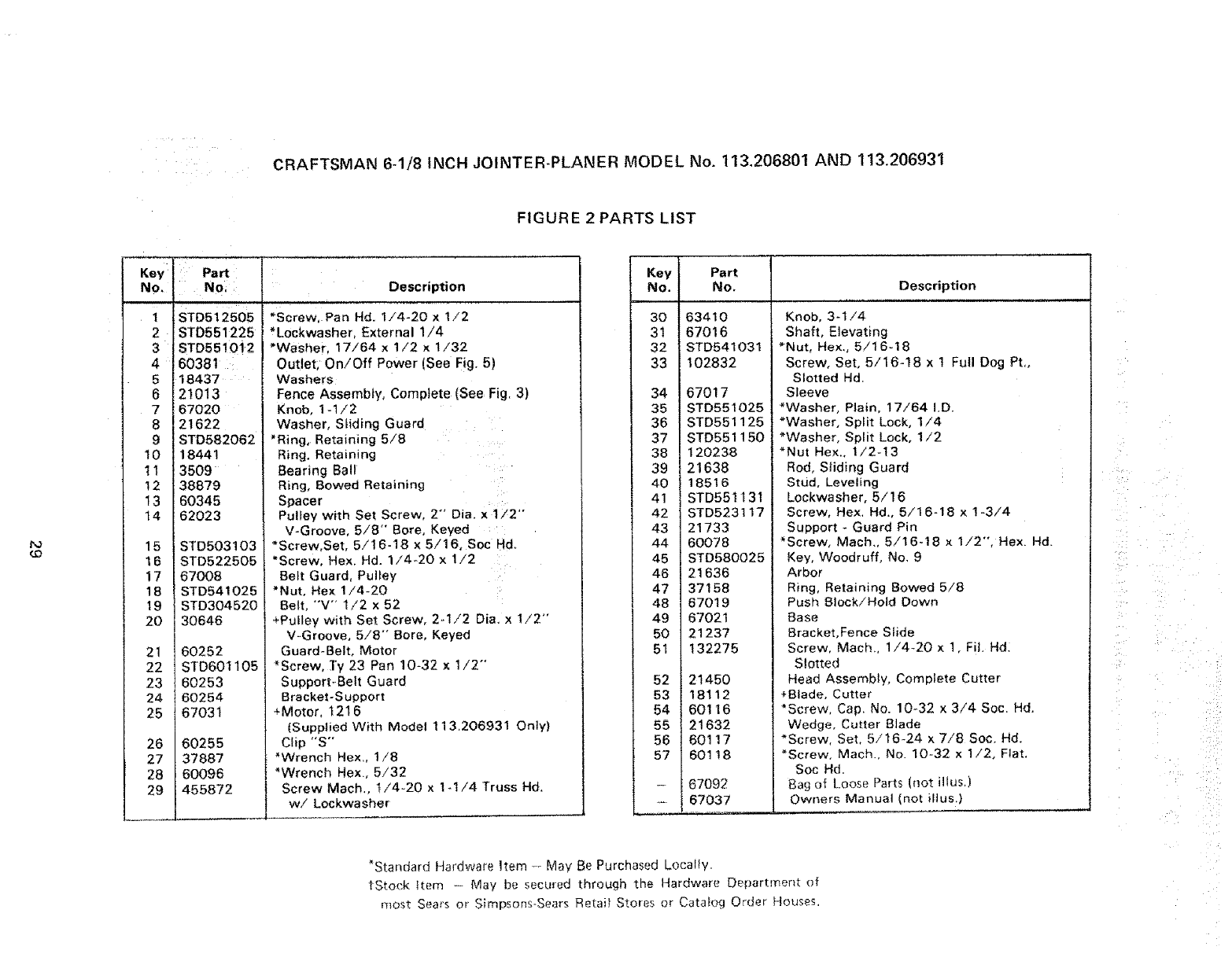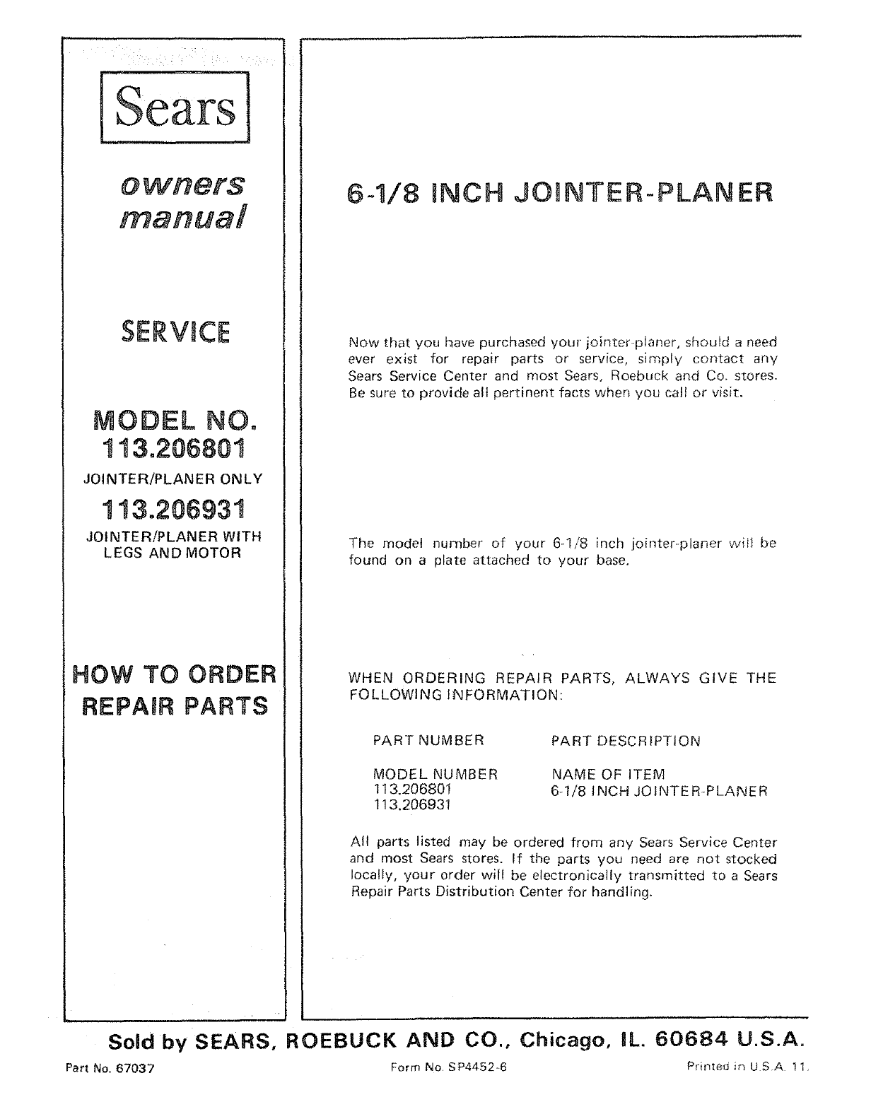 CRAFTSMAN 6-1/8 INCH JOINTER-PLANER MODEL No. 113.206801 AND 113.206931