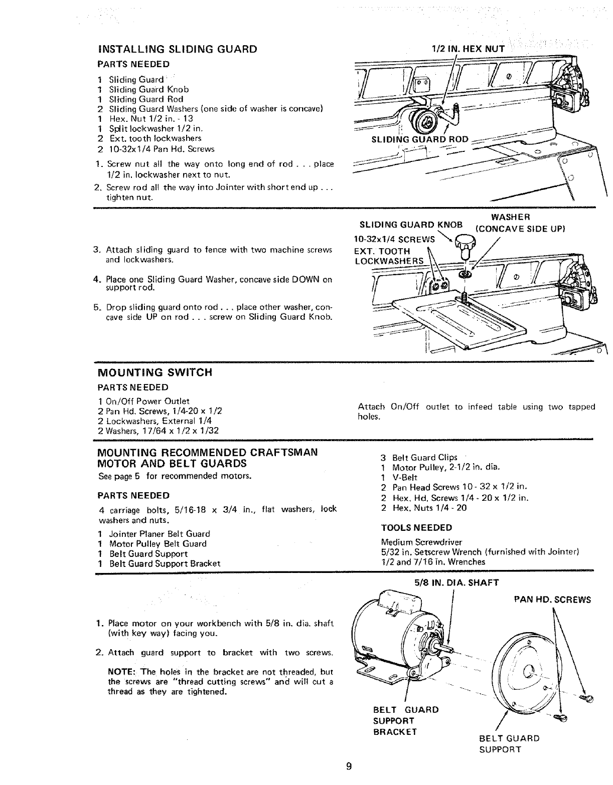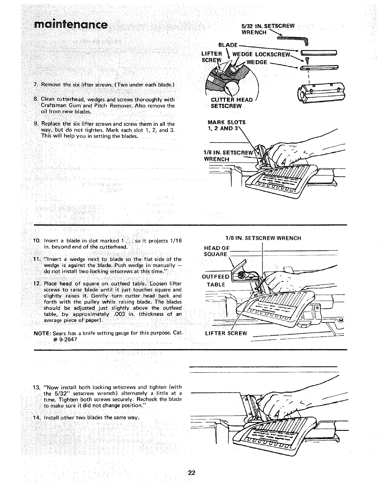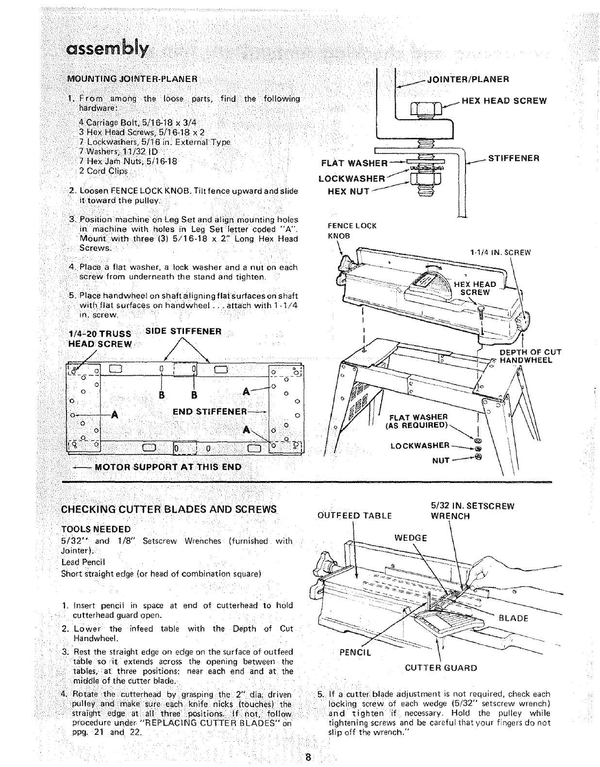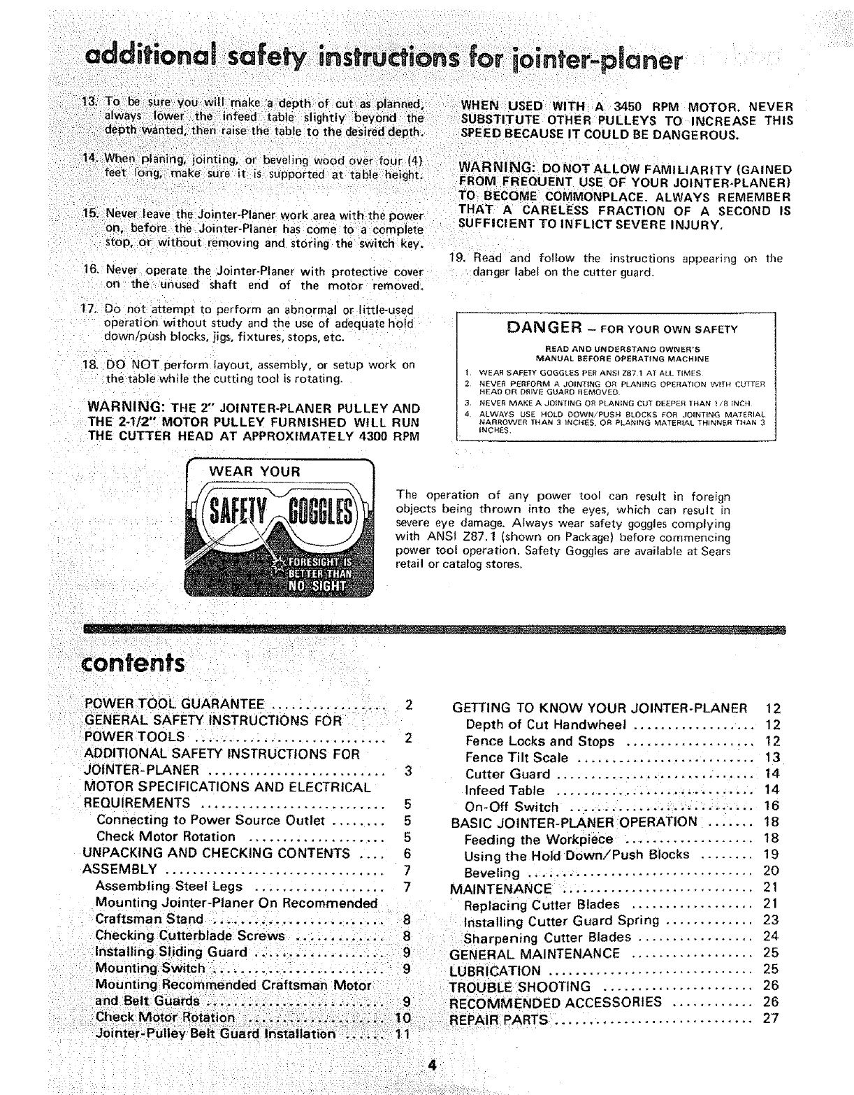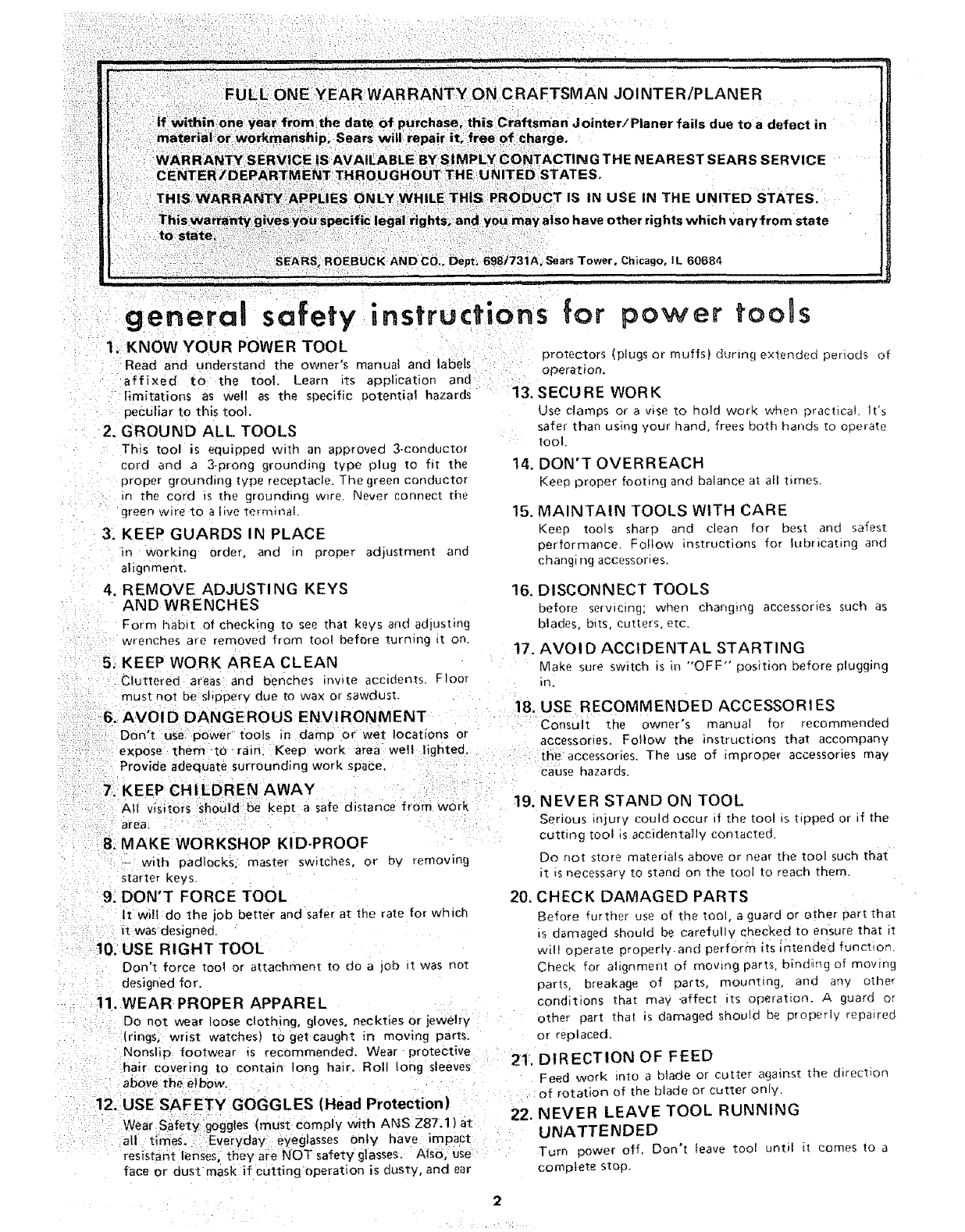 CRAFTSMAN Jointer/Planer Manual L0805383 CRAFTSMAN Jointer/Planer Owner's Manual, CRAFTSMAN Jointer/Planer installation guides