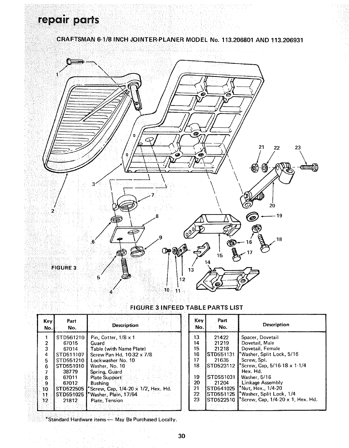 113206801 113206801 CRAFTSMAN 6 1/8-INCH JOINTER-PLANER - Manuals and Guides L0805383 View the owners manual for your CRAFTSMAN 6 1/8-INCH JOINTER-PLANER #113206801. Home:Tool Parts:Craftsman Parts:Craftsman 6 1/8-INCH JOINTER-PLANER Manual