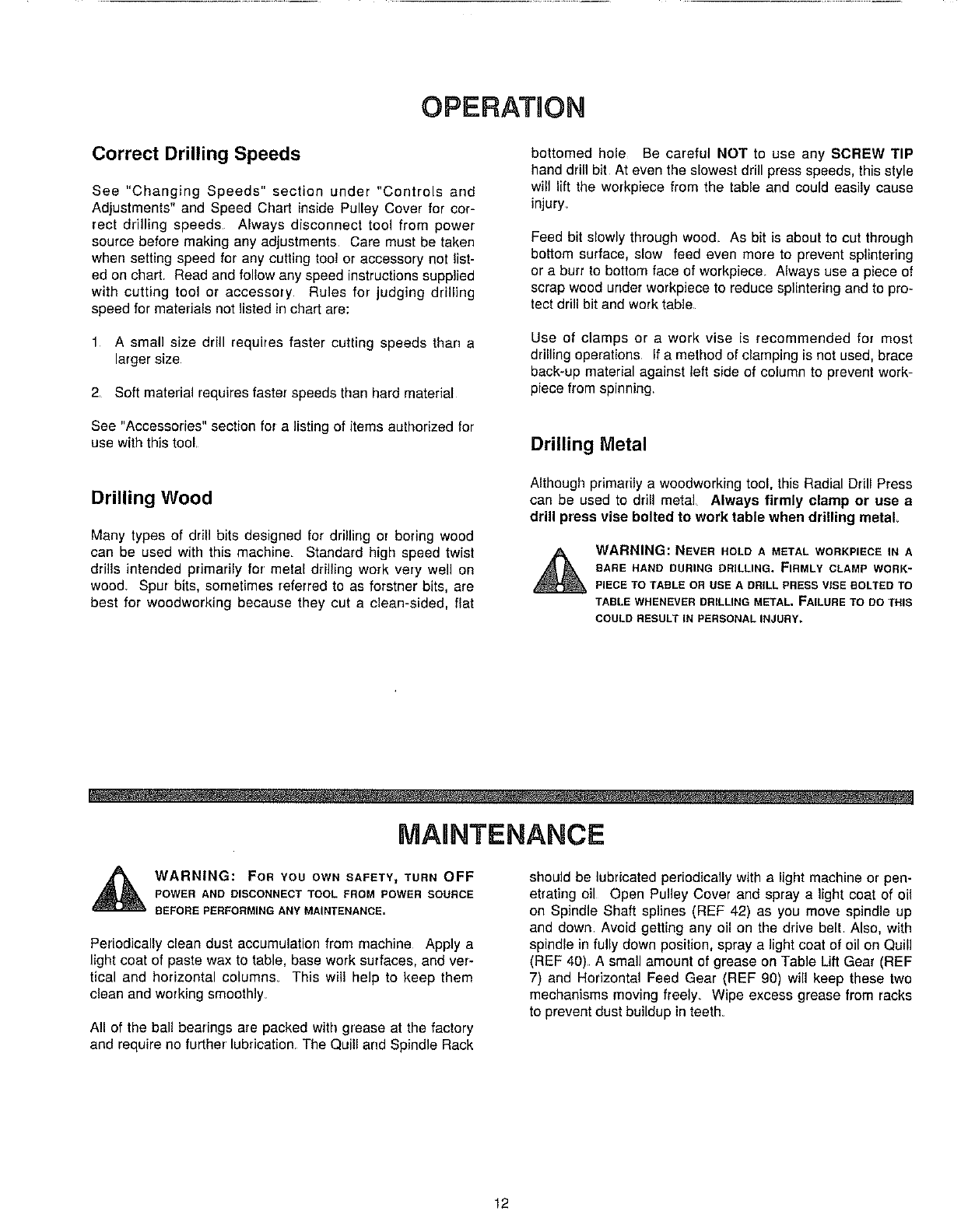 FULL ONE-YEAR WARRANTY ON CRAFTSMAN RADIAL DRILL PRESS