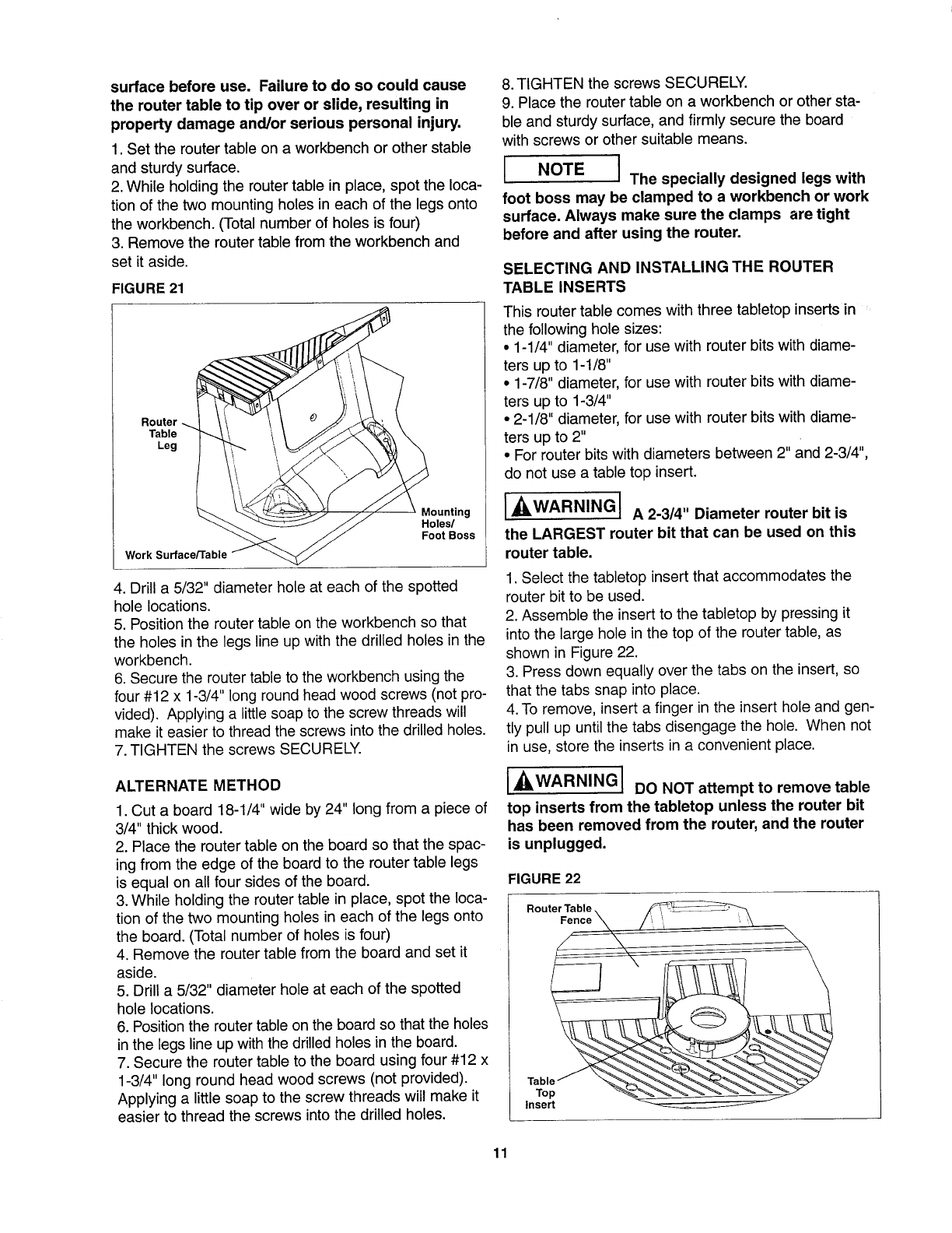 Mounting Router Table to a Workbench or Work Surface ................................................ 10