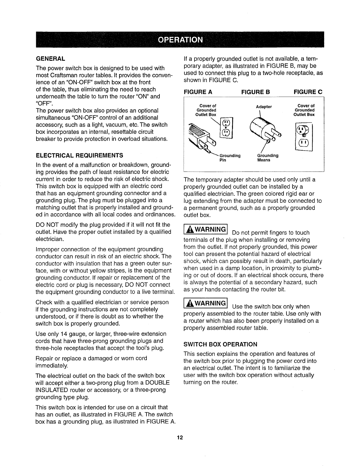 Electrical Requirements /Switch Box Operation .............................................................. 12