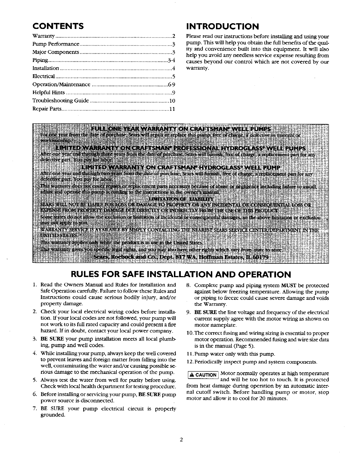 CRAFTSMAN Well pump Manual L0511301 CRAFTSMAN Well pump Owner's Manual, CRAFTSMAN Well pump installation guides