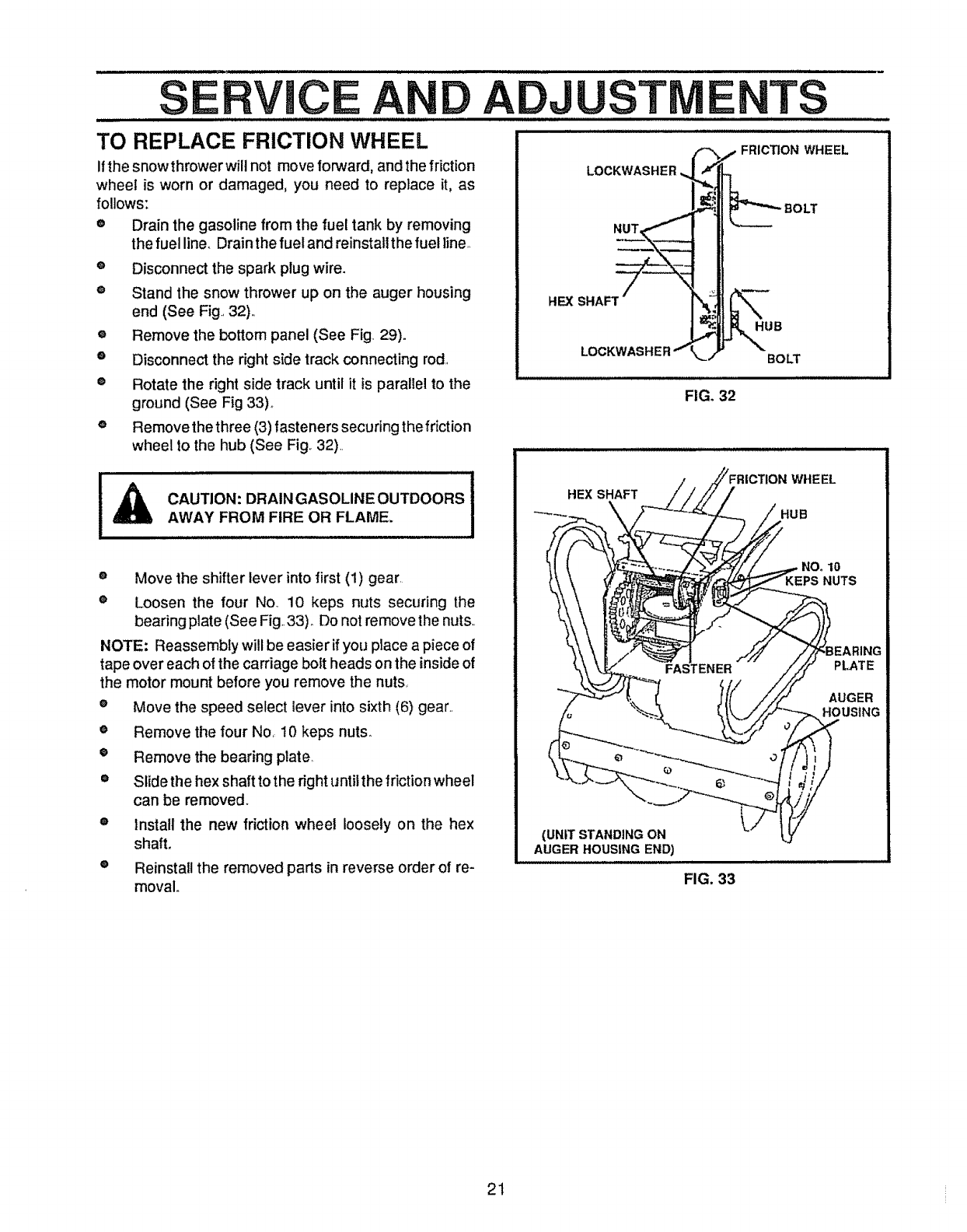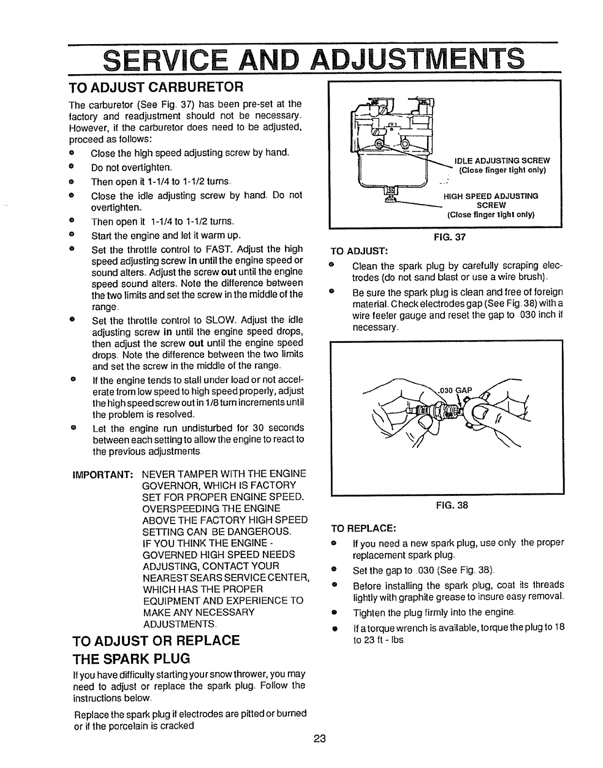 CAUTION: ALWAYS DISCONNECT SPARK PLUG WIRE AND A
