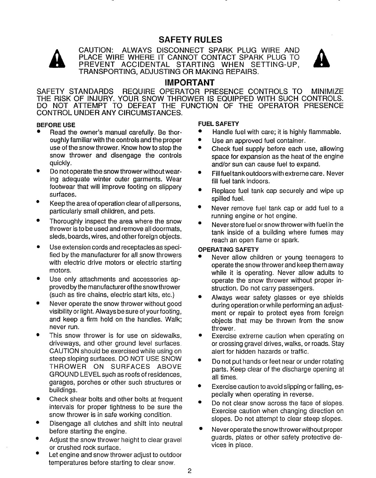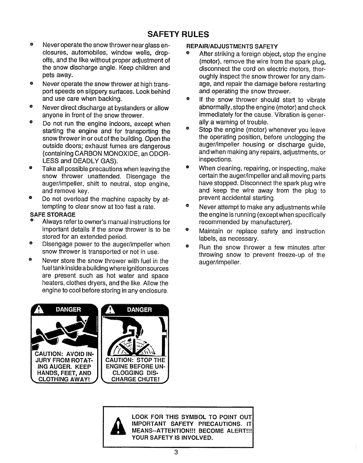 THE RISK OF INJURY. YOUR SNOW THROWER IS EQUIPPED WITH SUCH CONTROLS.