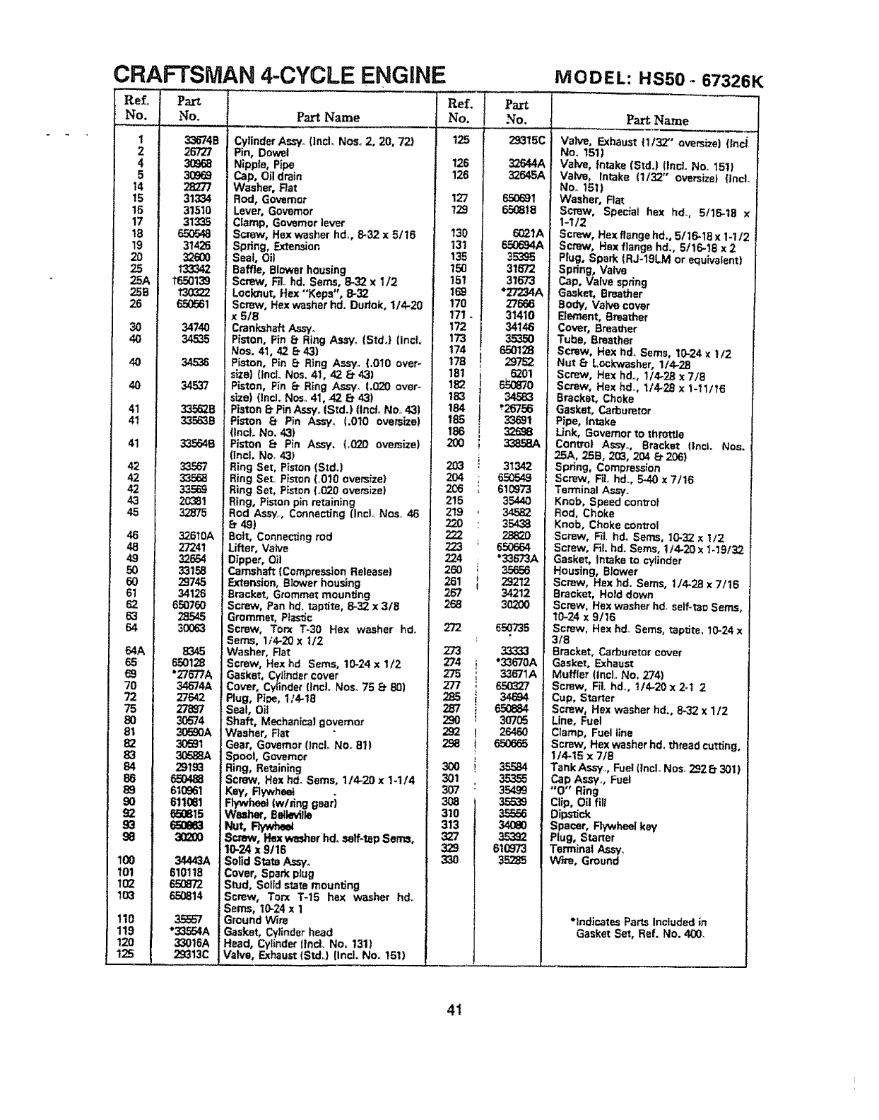 * ENGINE MODEL NUMBER HSS0- 67326K