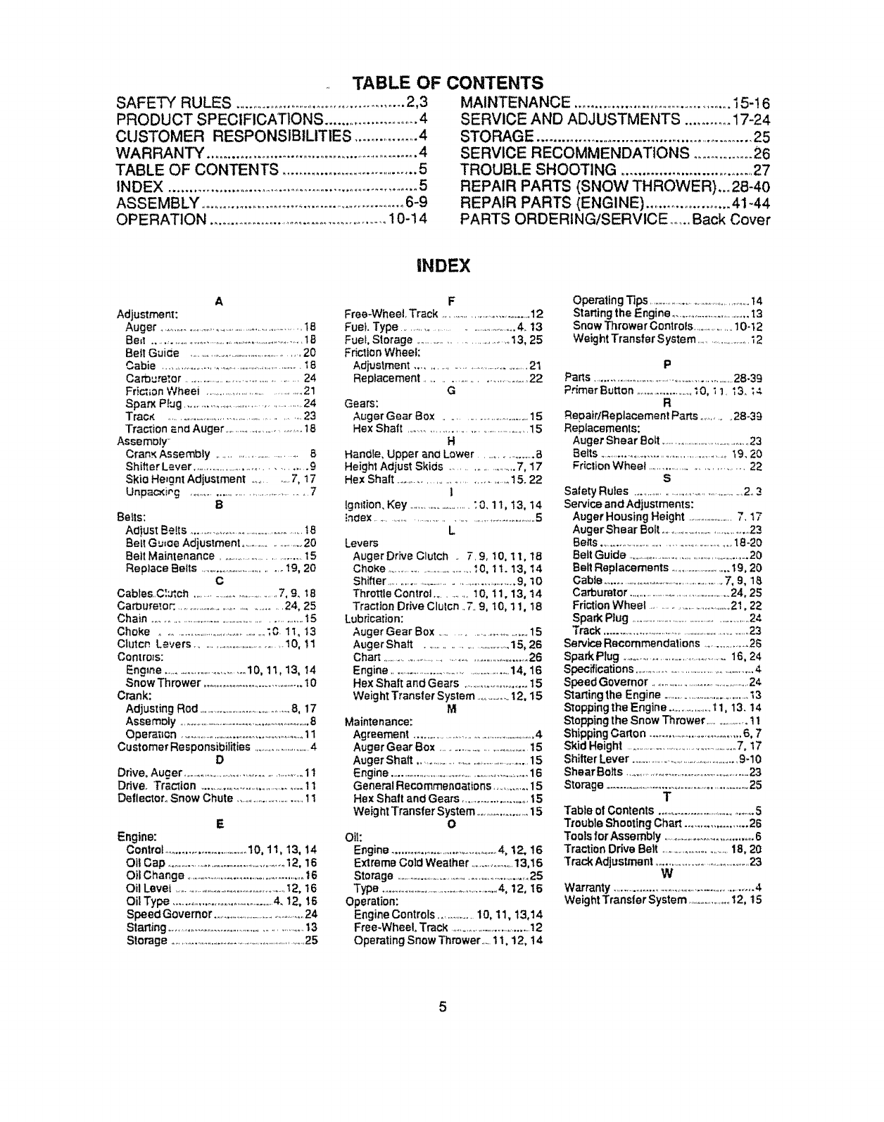 • Never store fuel or snow th rower wilh fuel in the